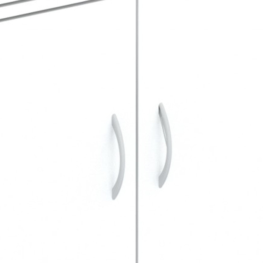 - Includes 5" brushed silver door/drawer pulls.