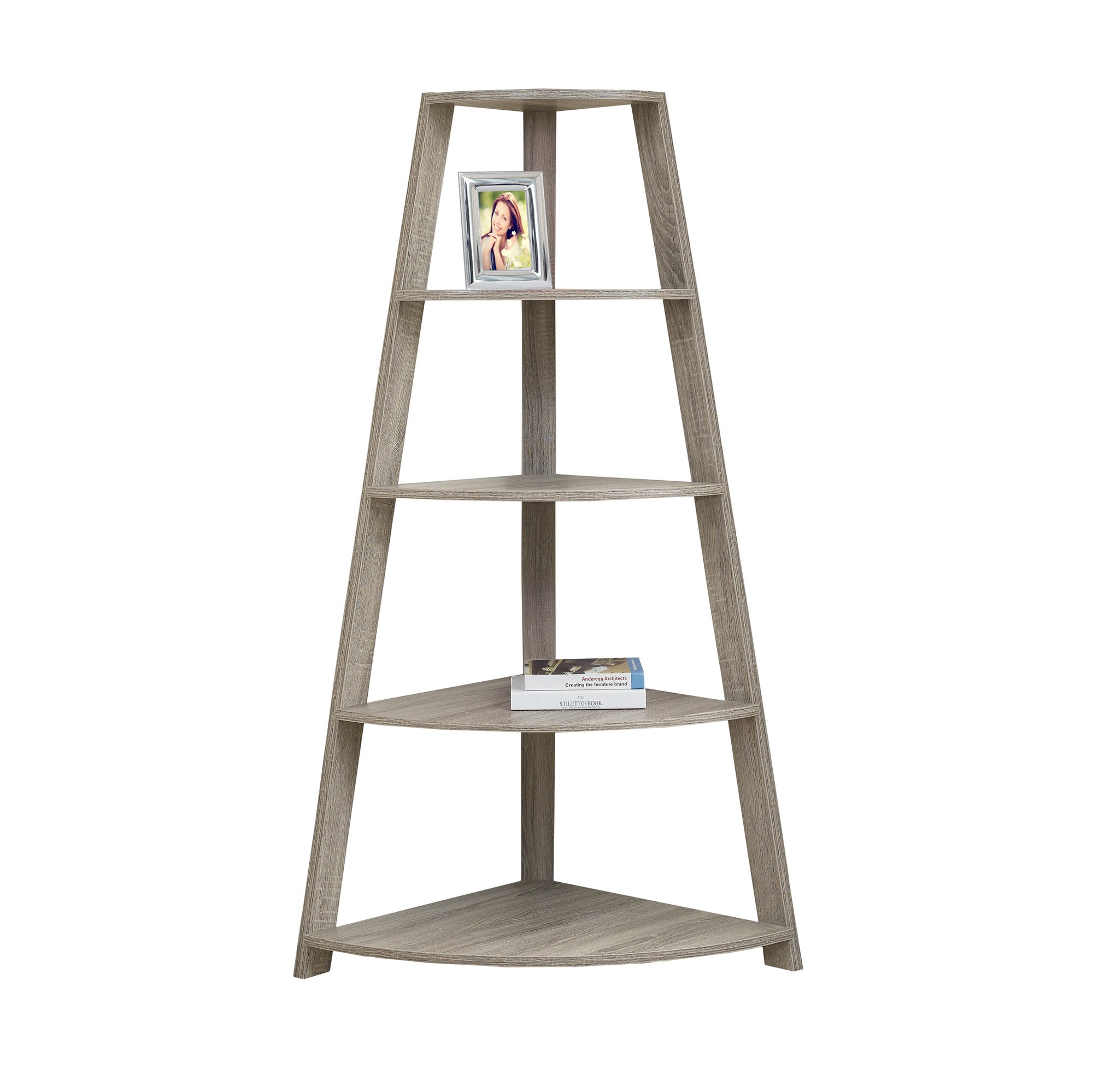 - Sturdy and good looking corner bookcase shelving unit.
