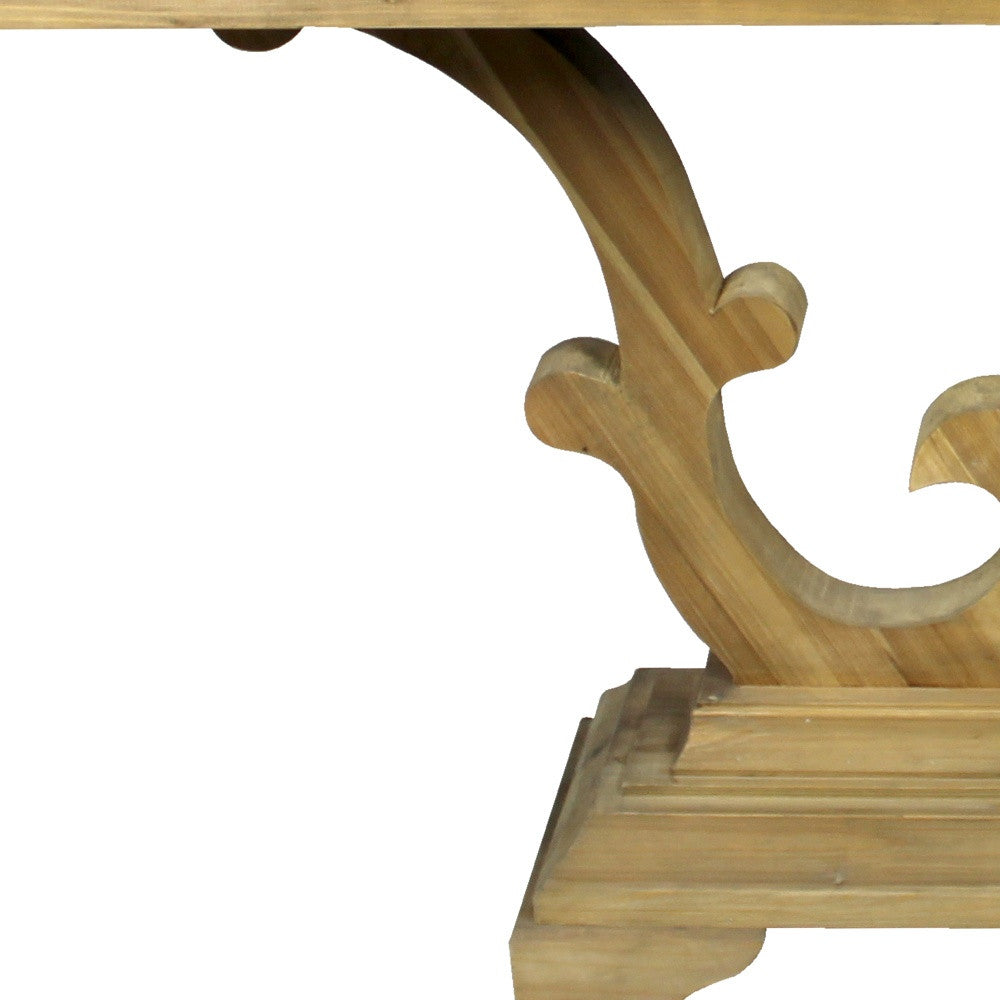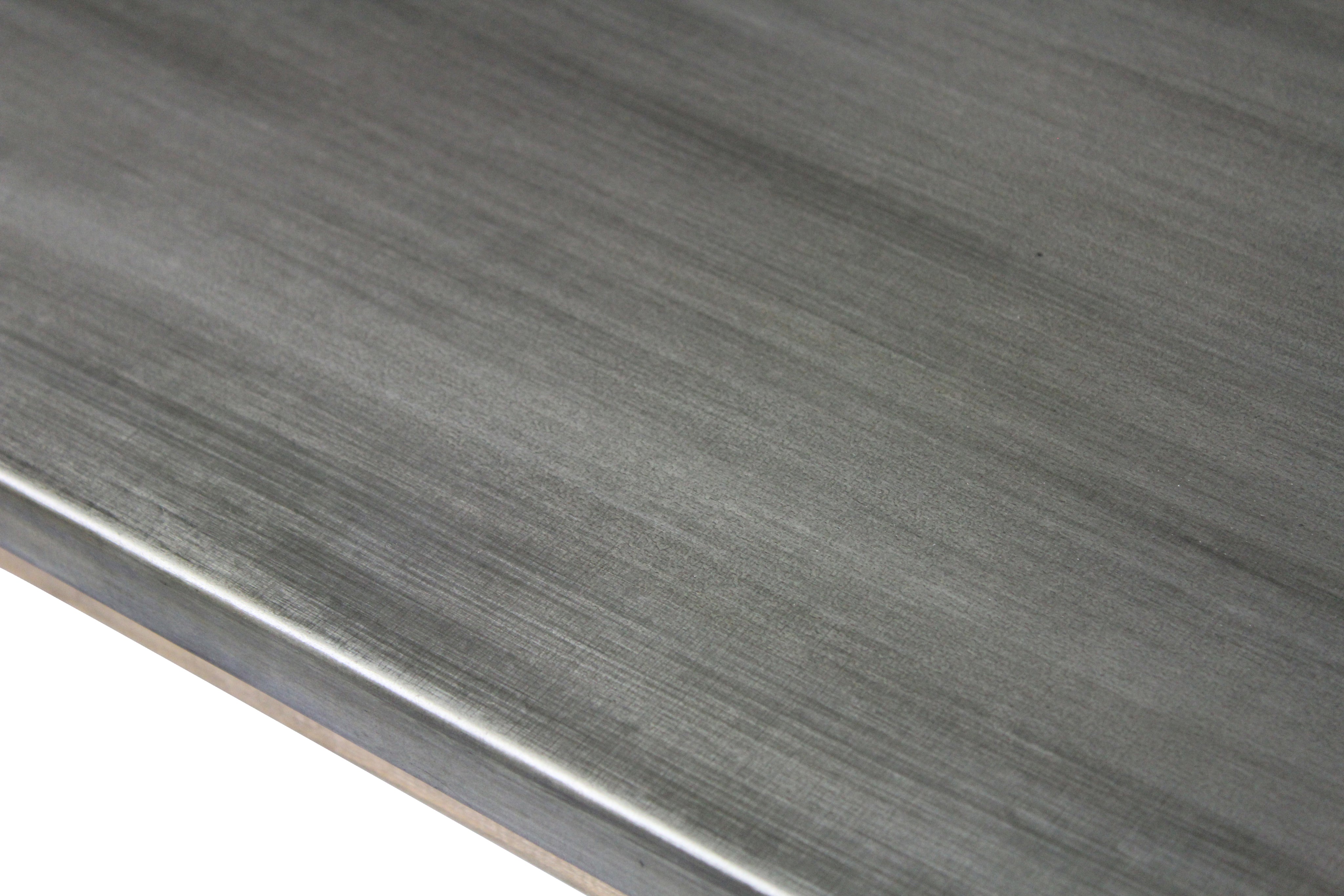 - Stylish rectangular console table with a solid wood base and a sleek zinc top.