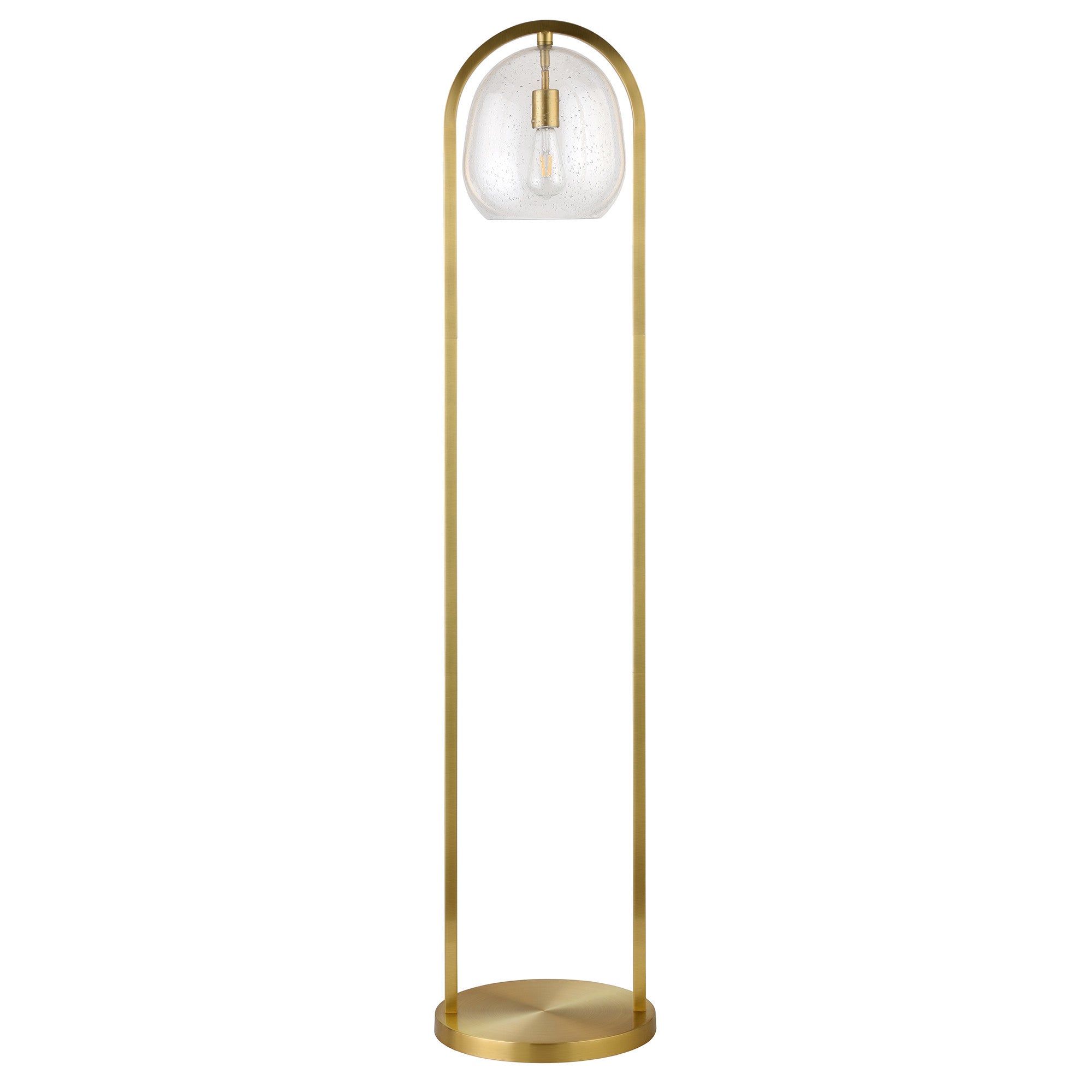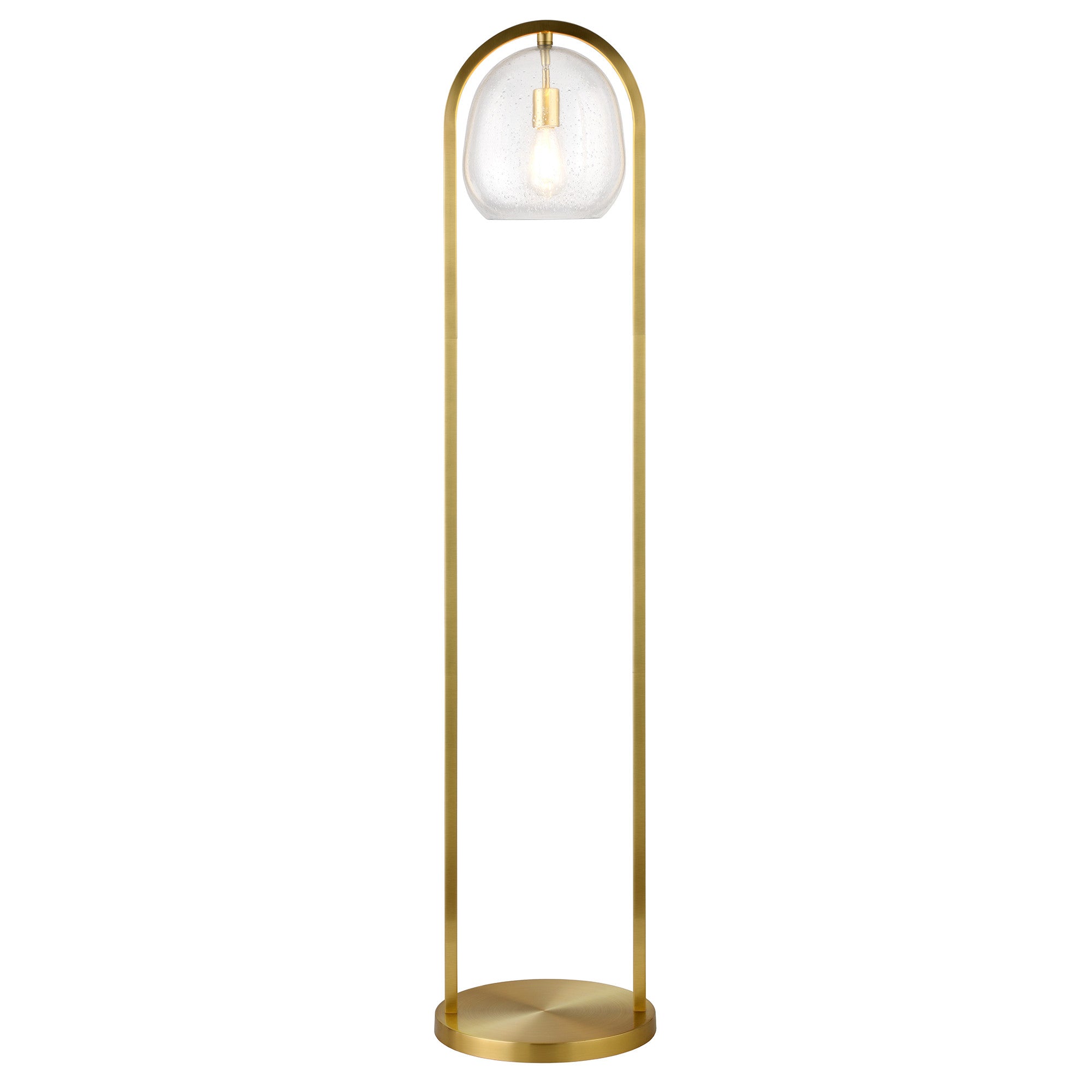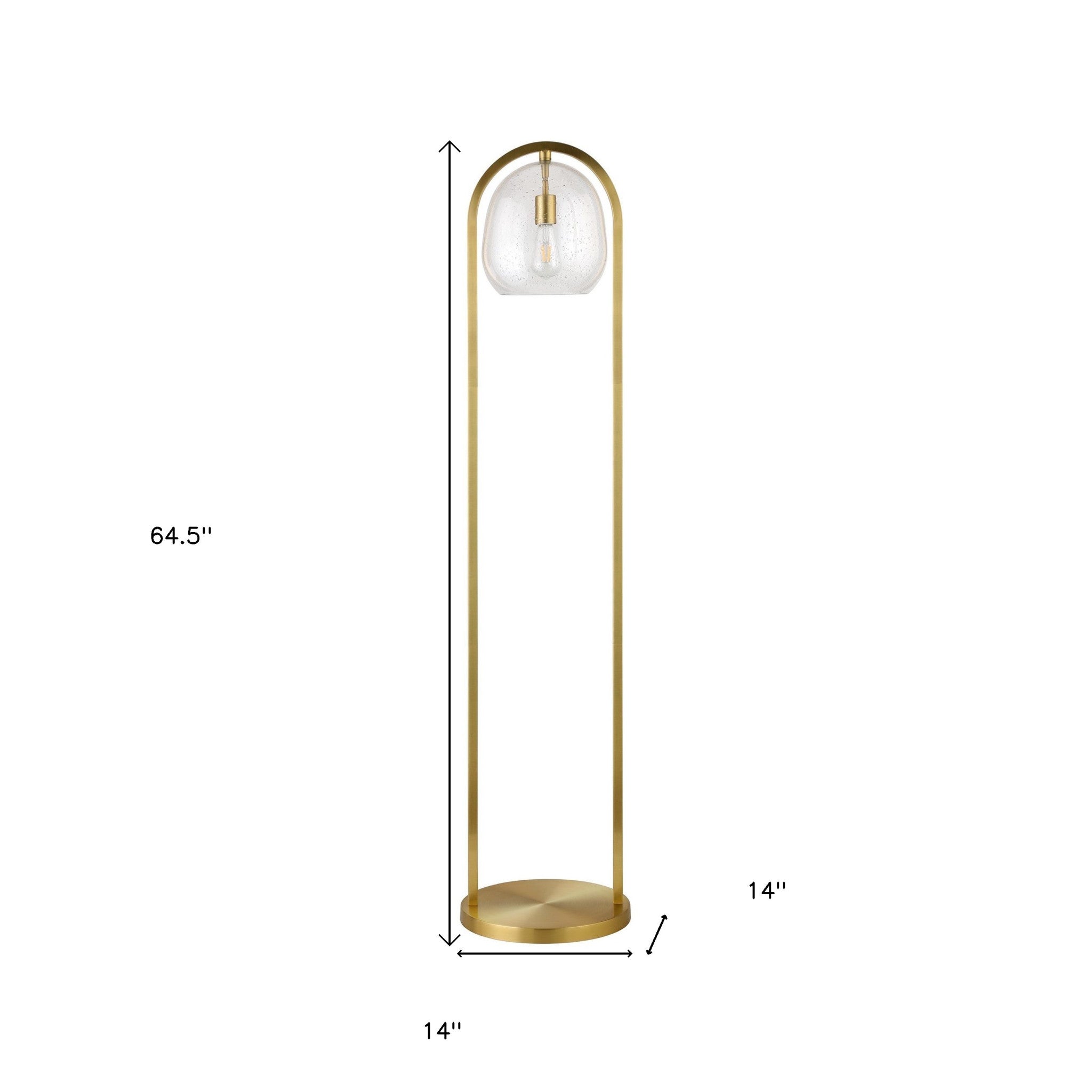 - Handcrafted brushed brass finish is applied to the round metal column base.