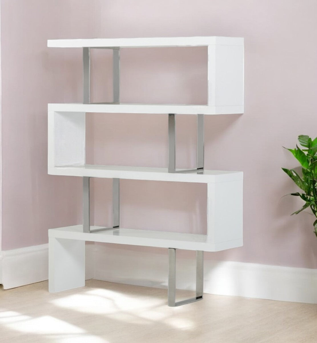 - Featuring an open back with matching front and back, this versatile bookcase can be used as a room divider.