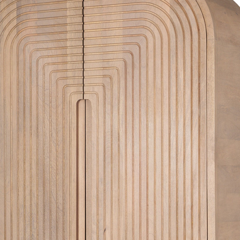 - Unique arched shape tall four door accent cabinet with soft curved corners.