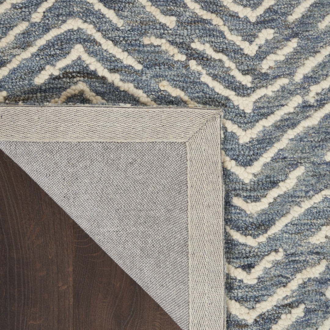 - Modern indigo and ivory area rug for living room, requires easy vacuuming with no beater bar/rotating brush.