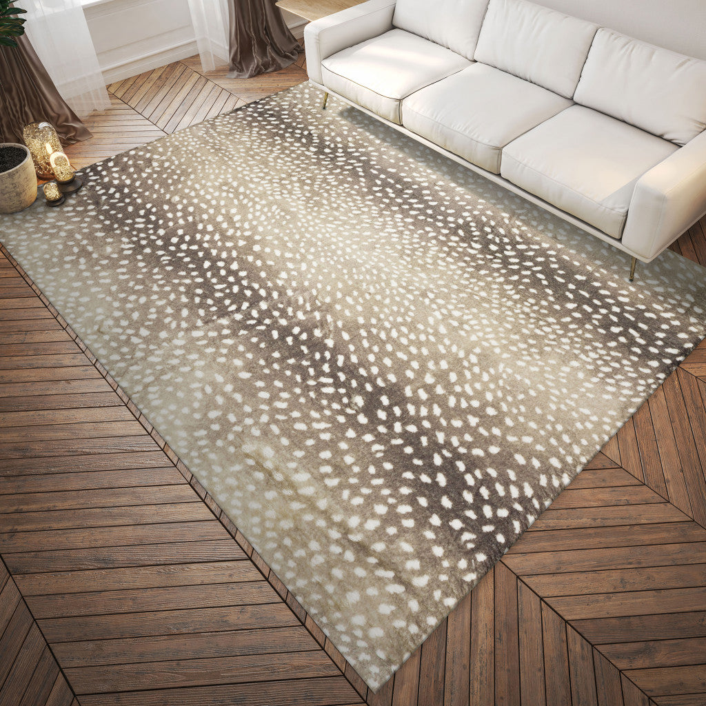 - Extra Soft and luscious, Shades of Beige, Taupe, and Ivory Gazelle Print Thick Faux Fur Shag is fashionable and fun.