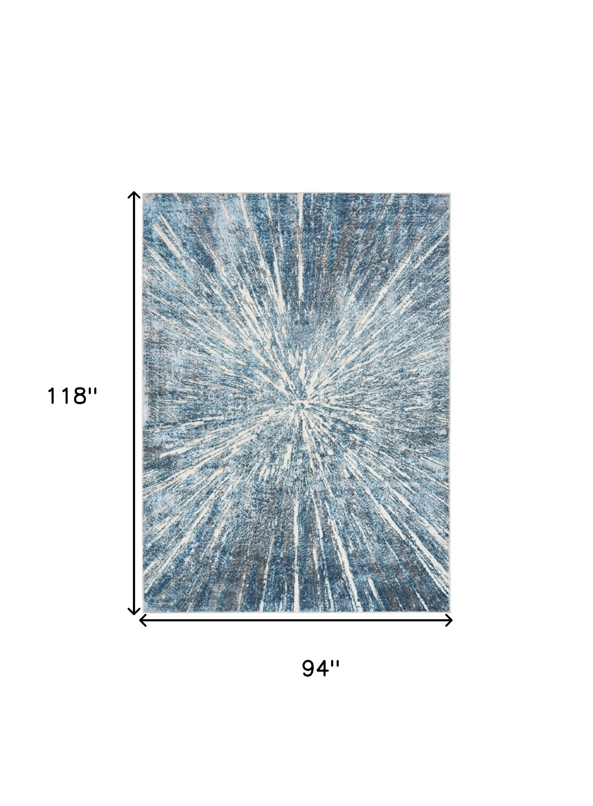 - ? Modern blue polyester area rug crafted with machine-made construction for easy care by vacuuming without beater bar/rotating brush.