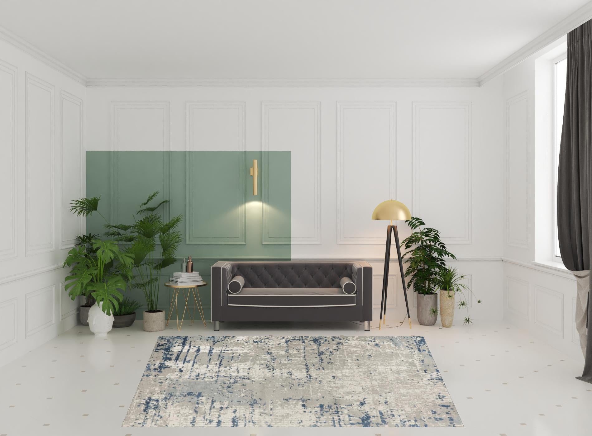 - Modern abstract rug adds soft texture to your space