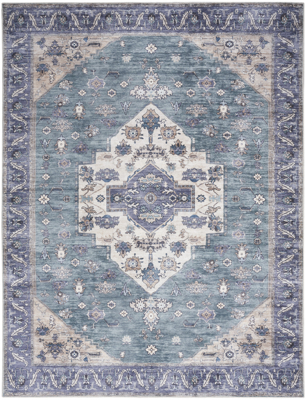 - Oriental-inspired area rug with a traditional style in beautiful blue and green colors.