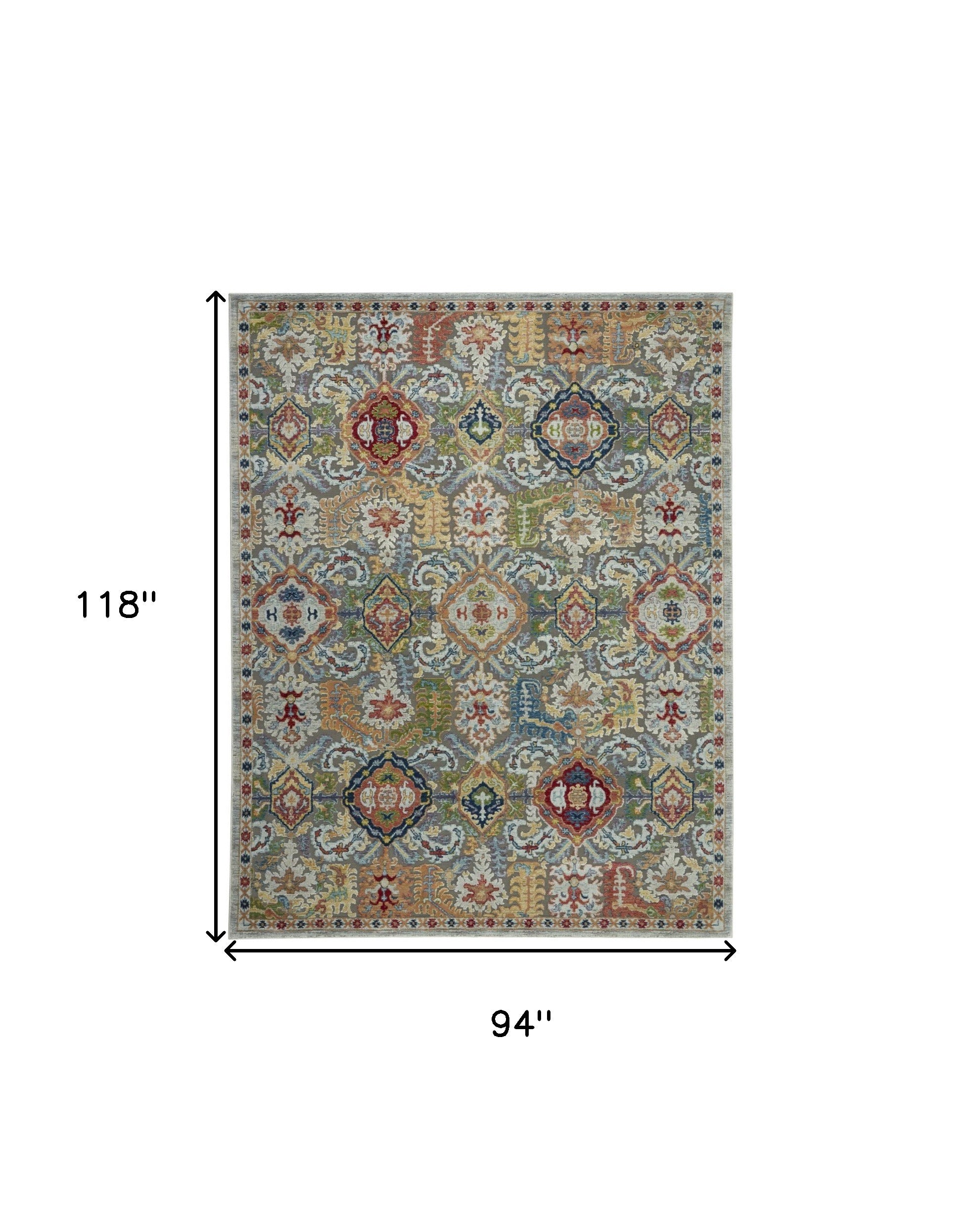 - bohemian style area rug with worn faded look, ideal for living room use.