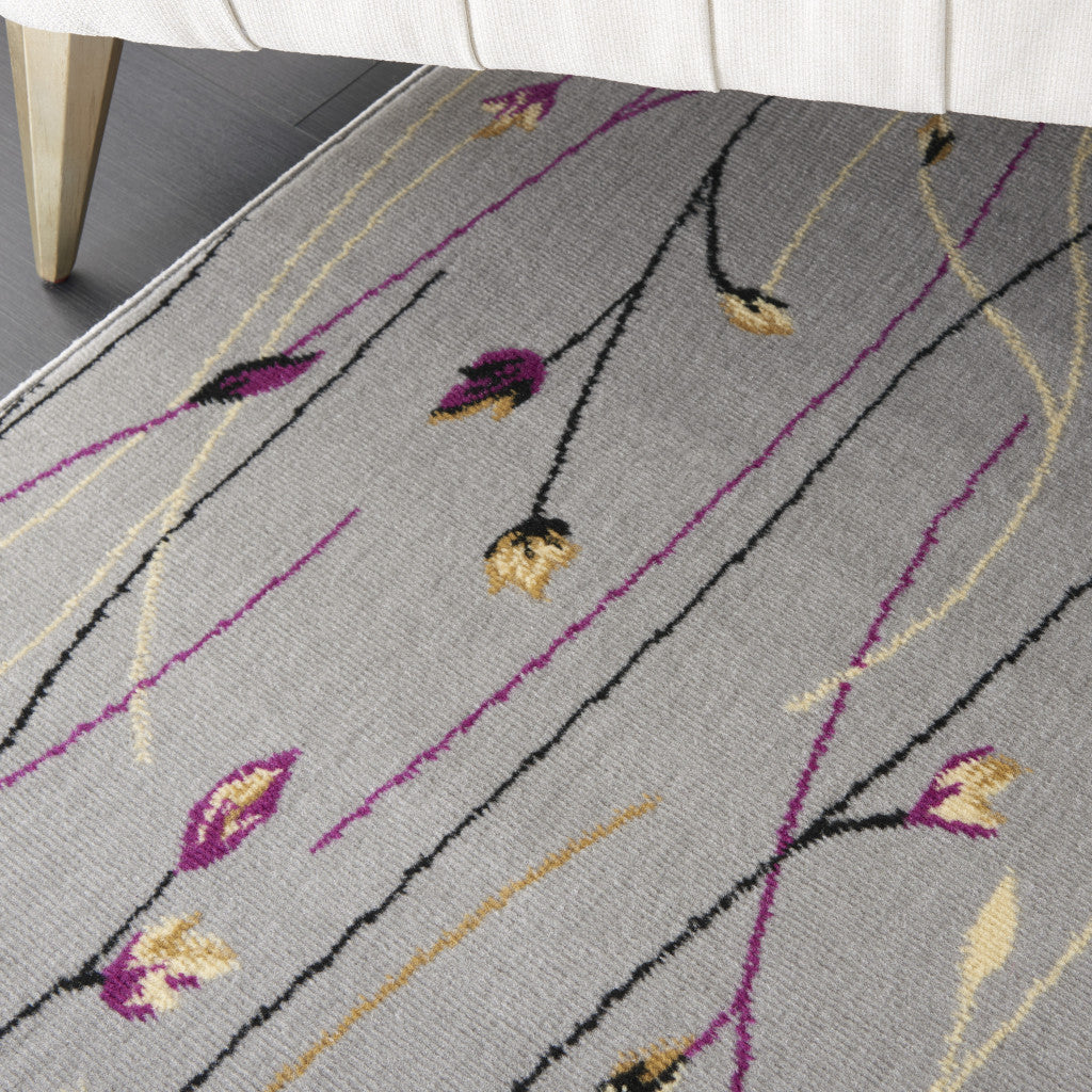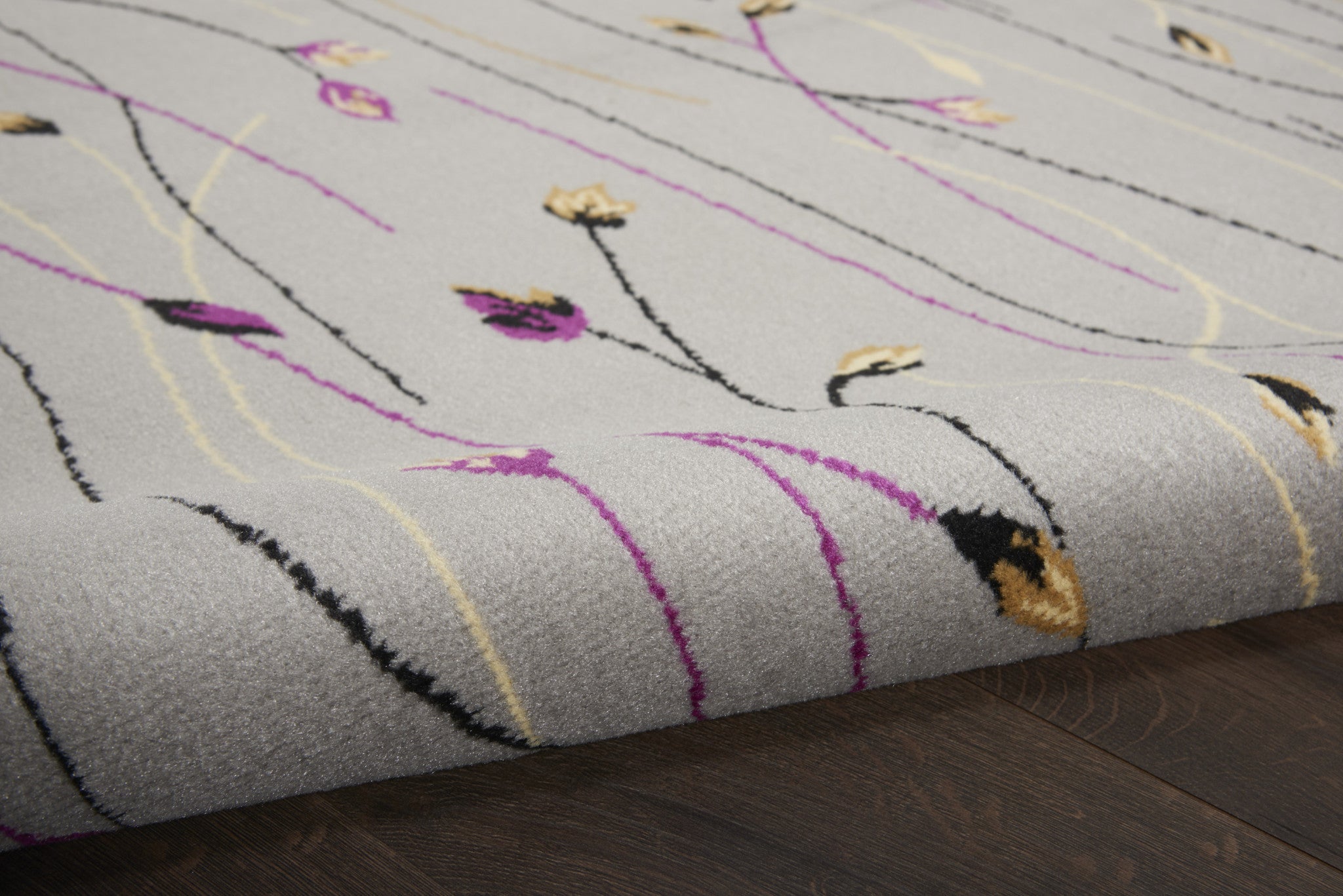 - Polypropylene area rug in contemporary gray and pink design is easy to maintain with regular vacuuming.