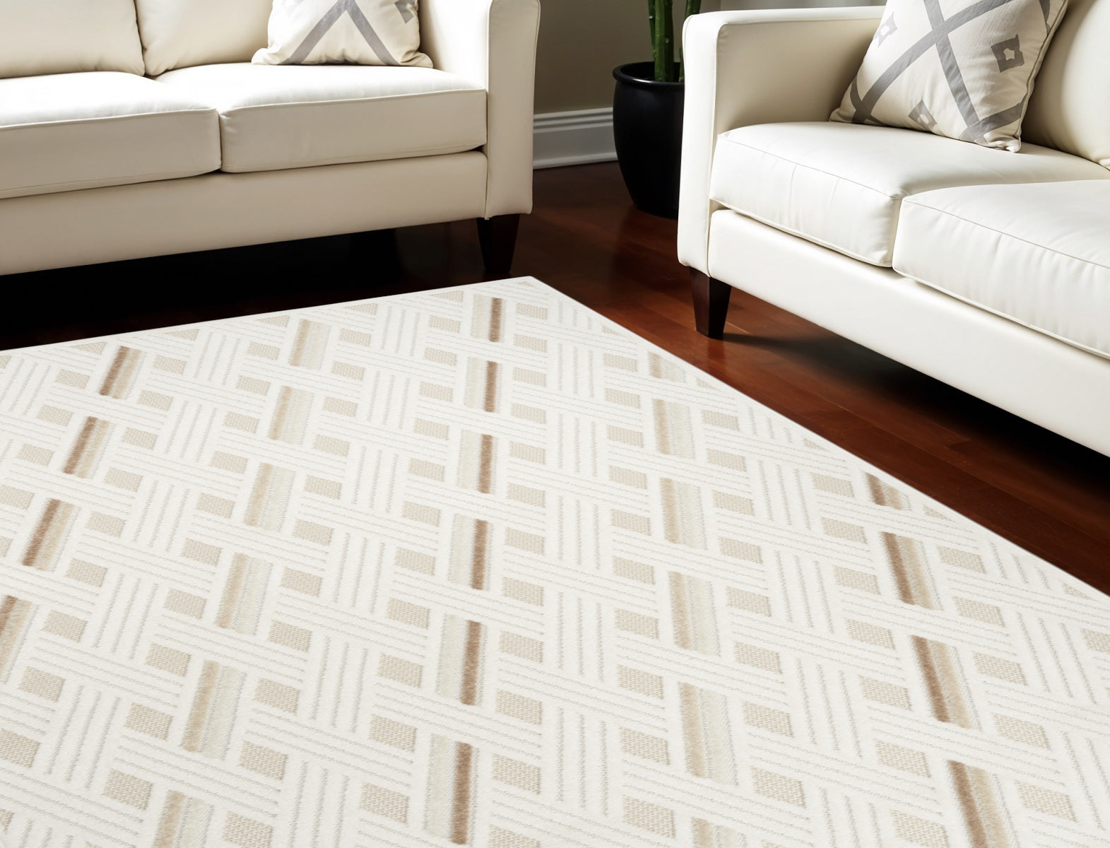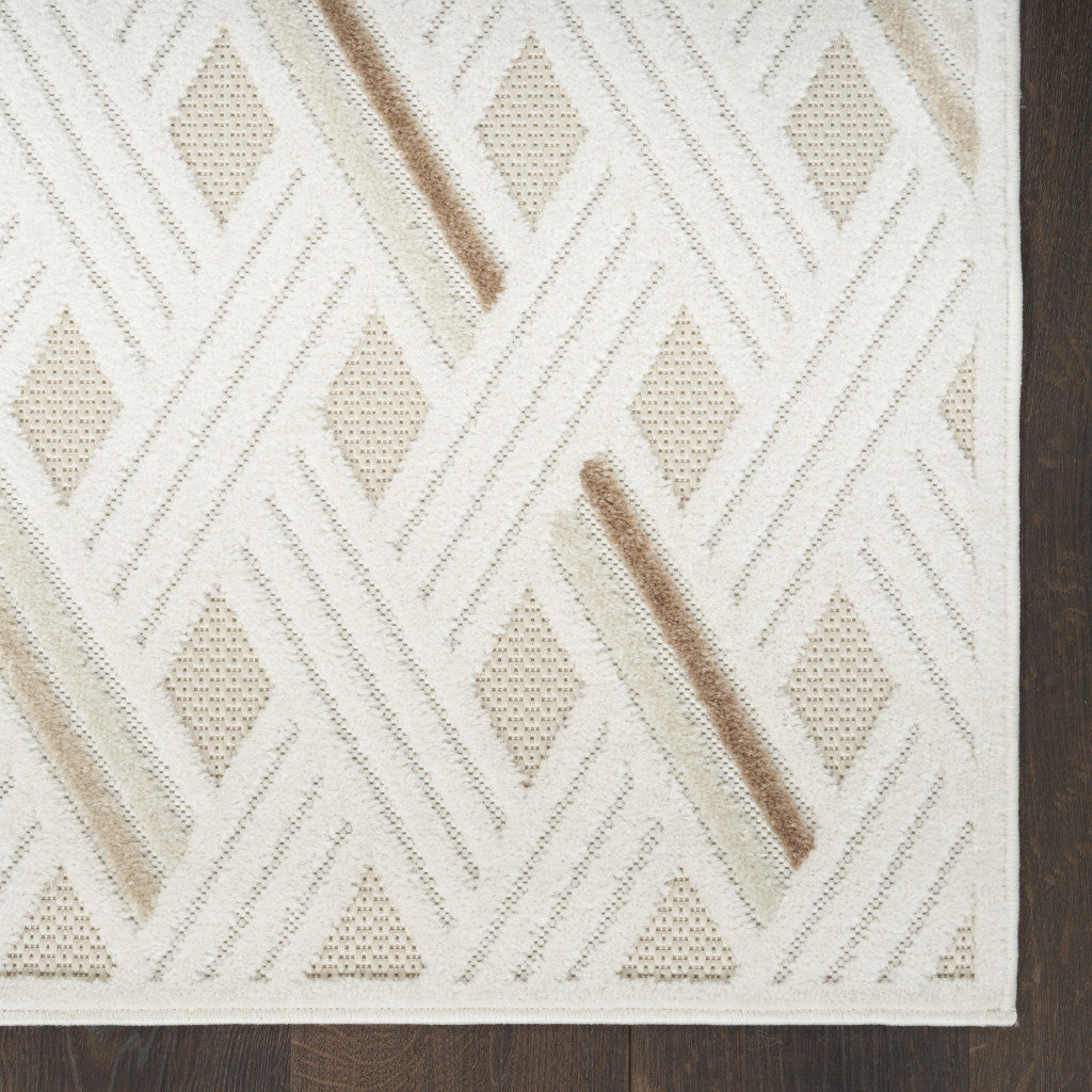 - Machine-made area rug in modern ivory color crafted from durable polypropylene for easy maintenance with regular vacuuming.