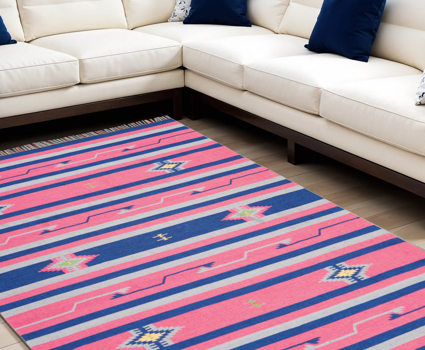 - Fringed tassels on the edges give this rug a special flair.