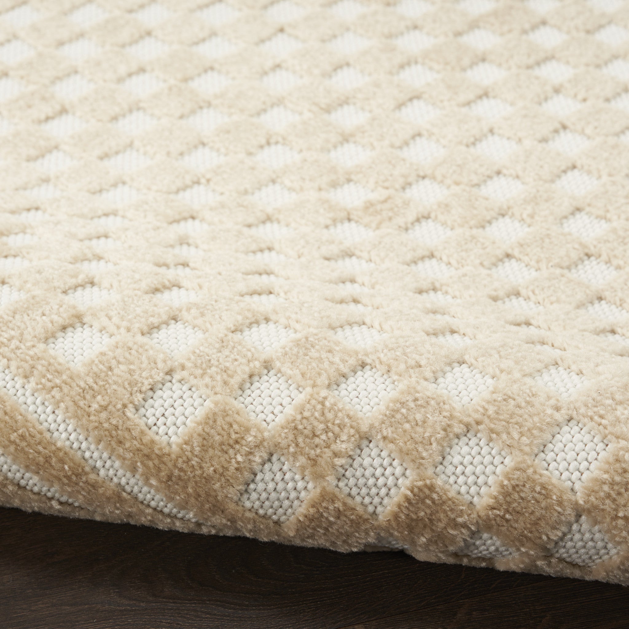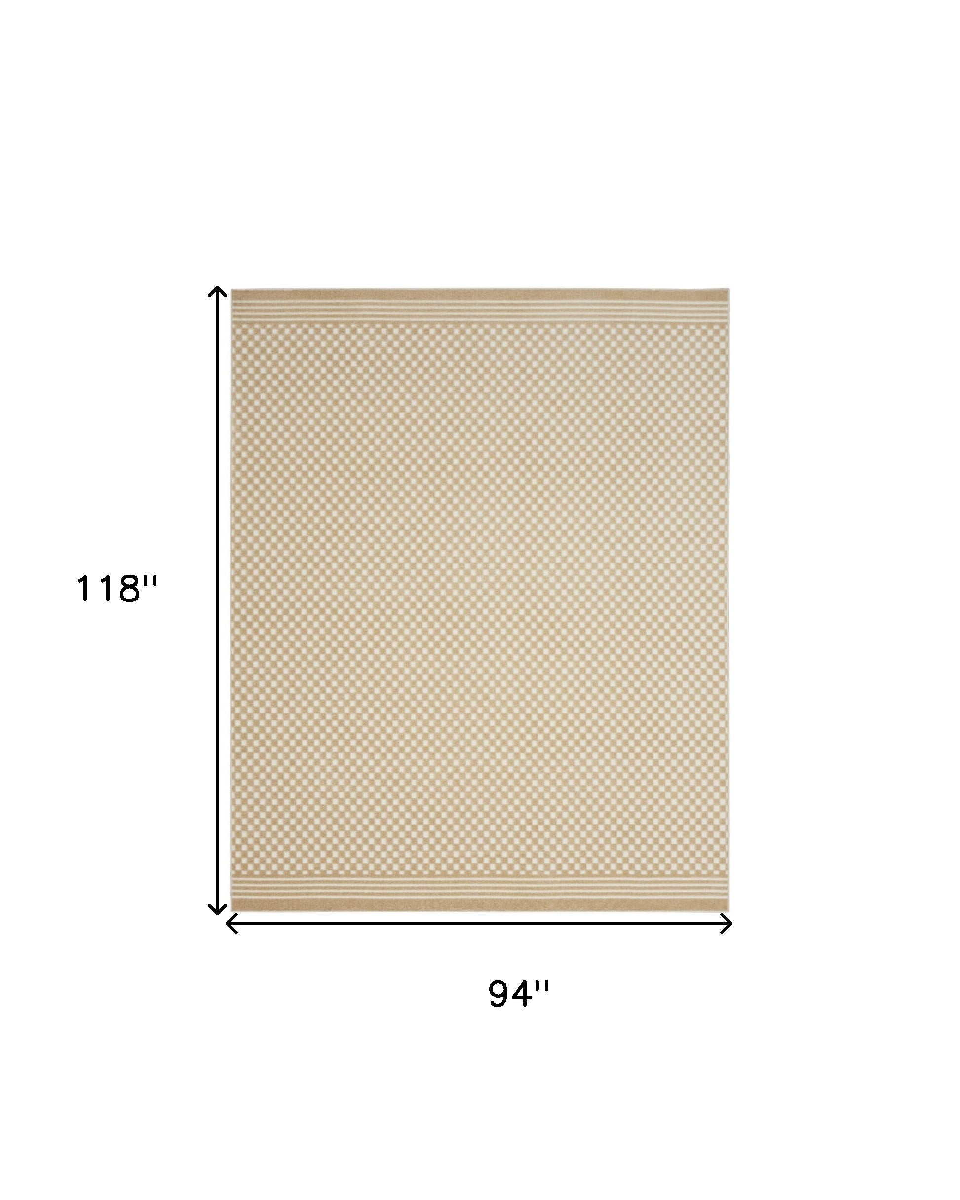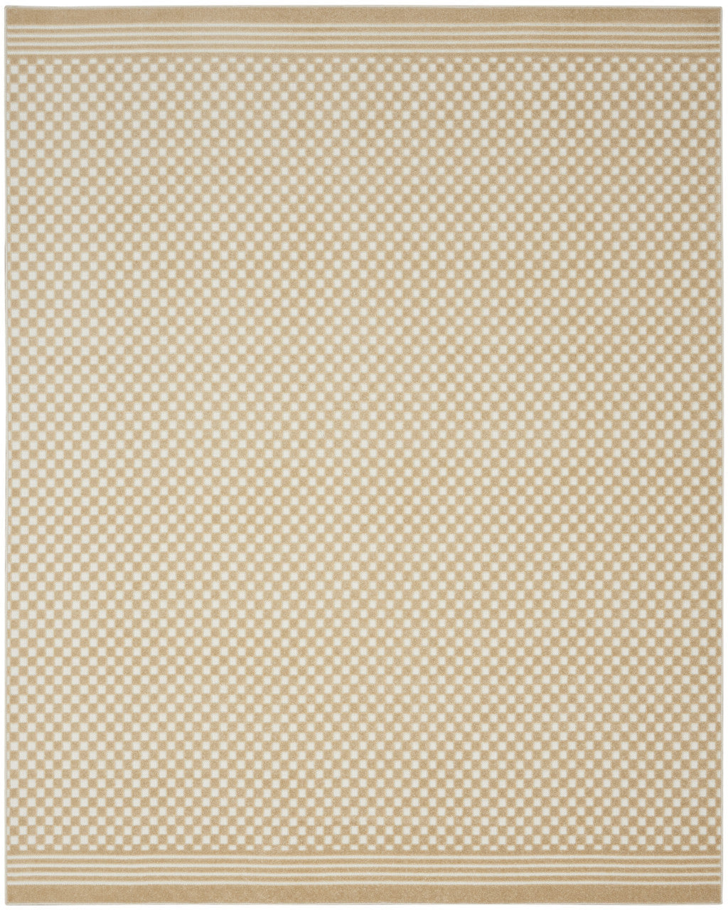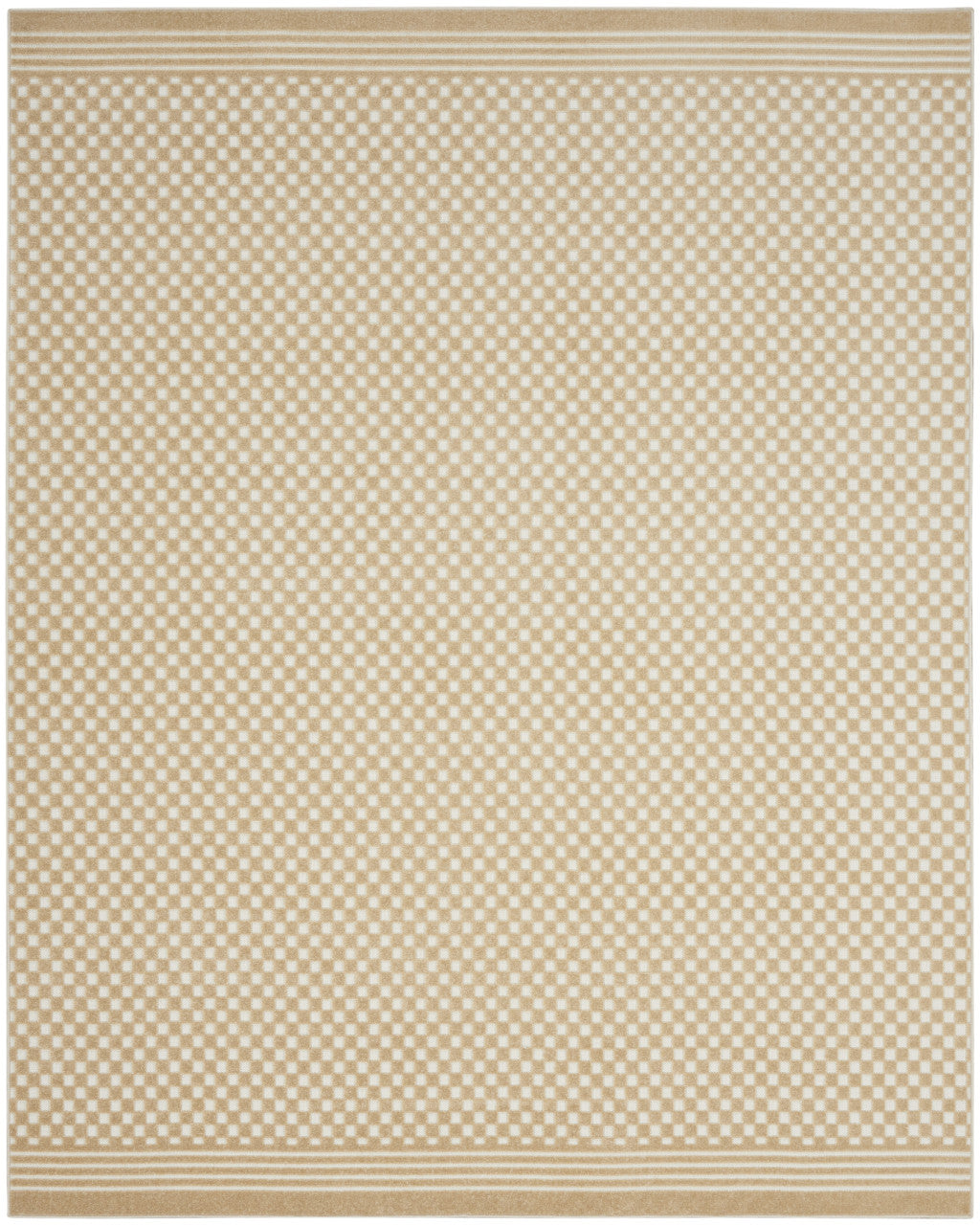 - Modern style tan area rug made of durable polypropylene with easy vacuum care maintenance.