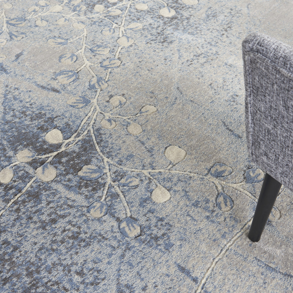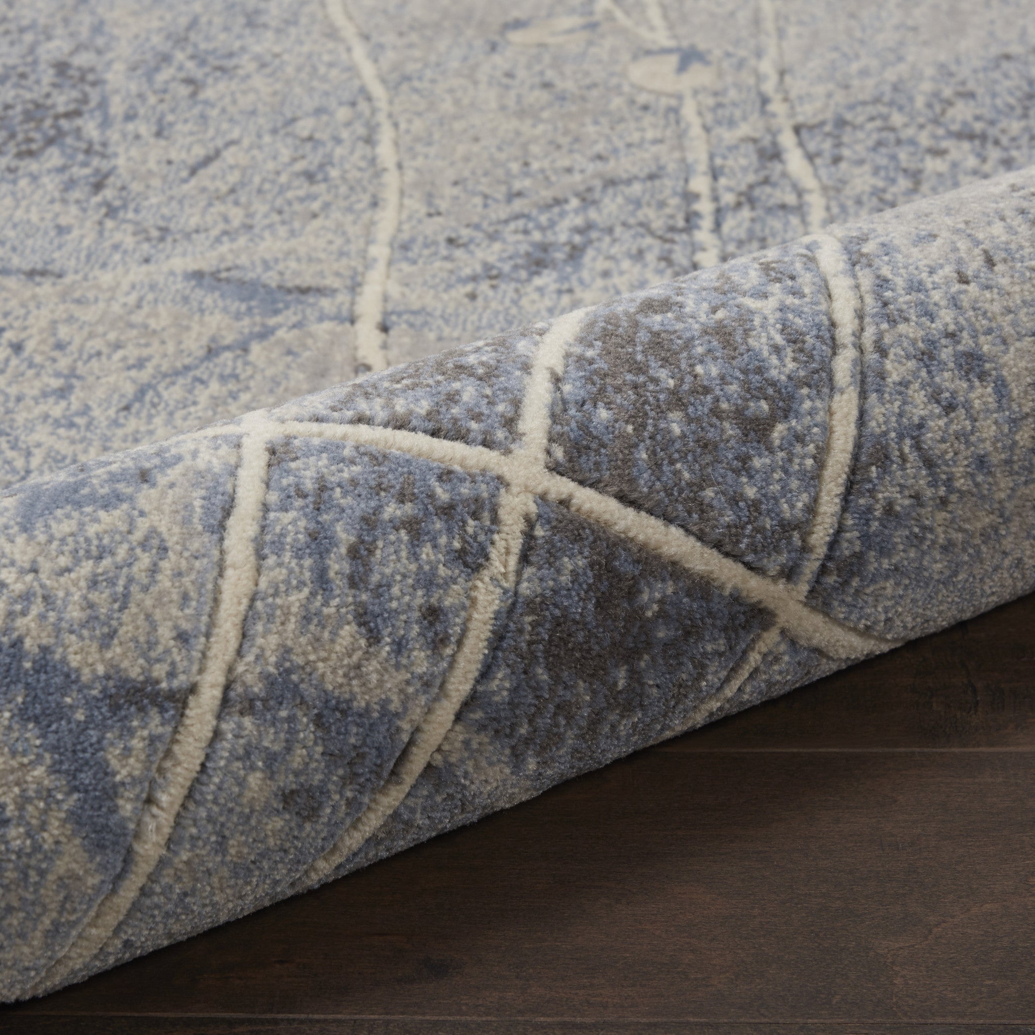 - Polyester area rug in contemporary blue design, featuring a non-slip backing for added stability.