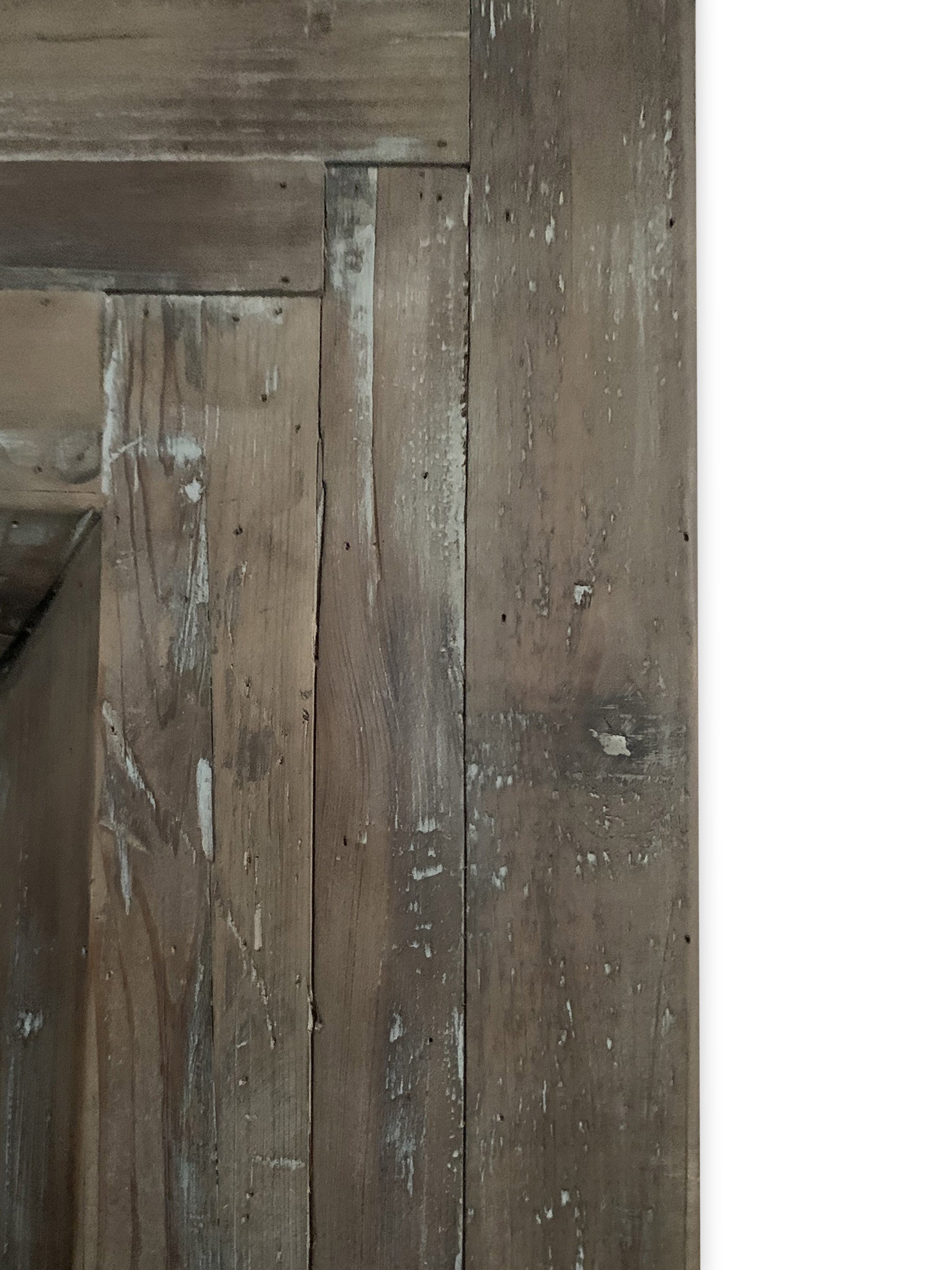 - Frame finish is purposefully distressed and weathered for a rustic / vintage style appearance.