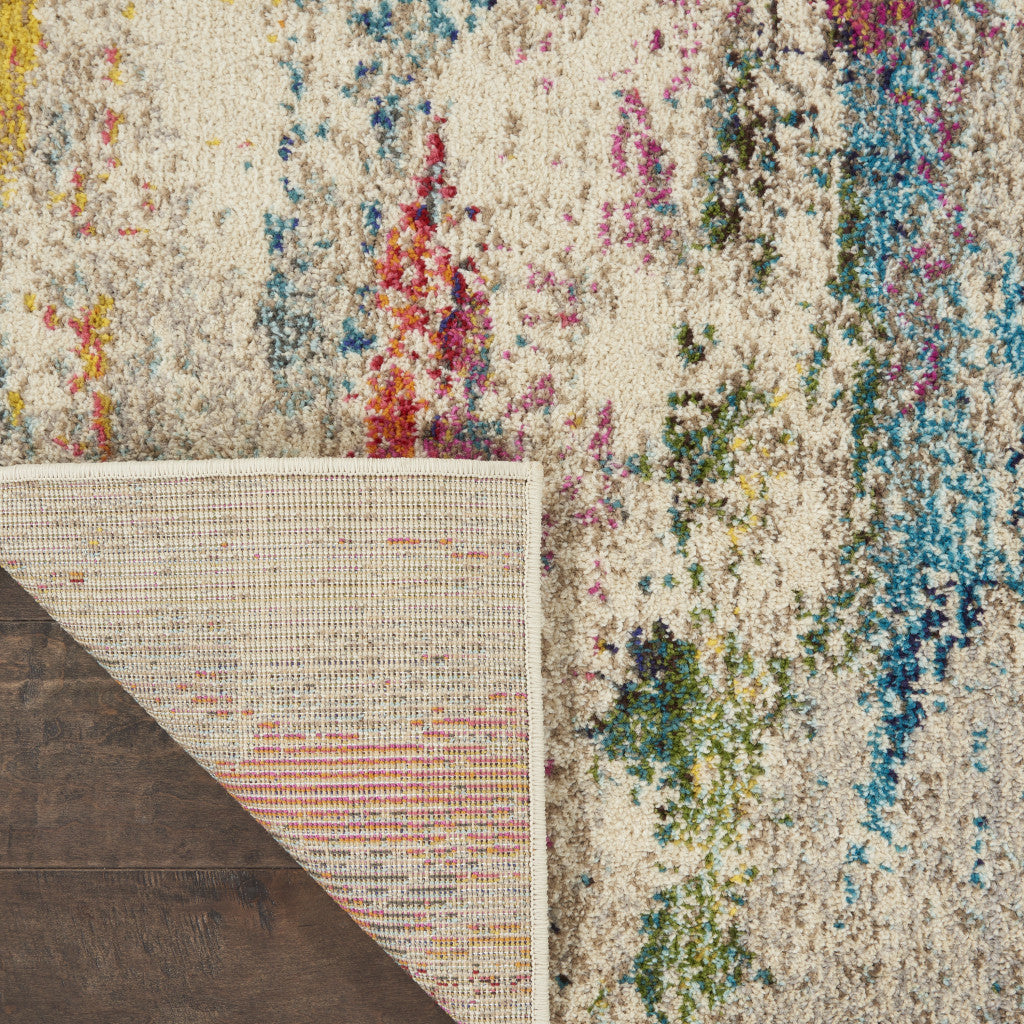- Easy to clean polypropylene area rug in contemporary ivory design.