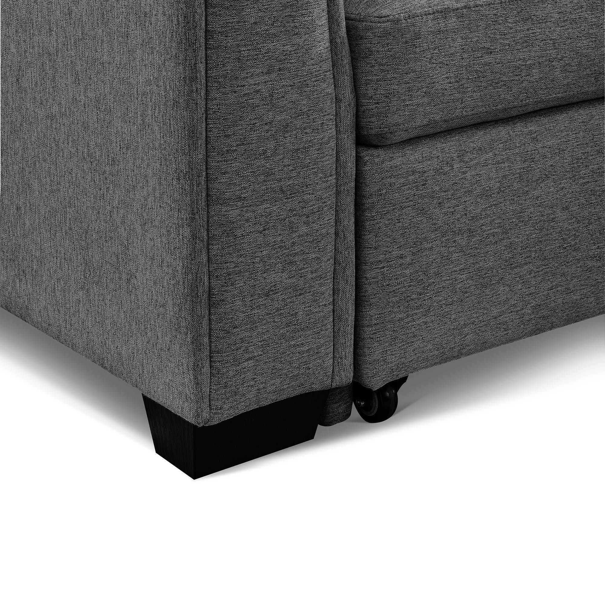 - Convertible futon sleeper sofa in dark gray with storage included.