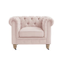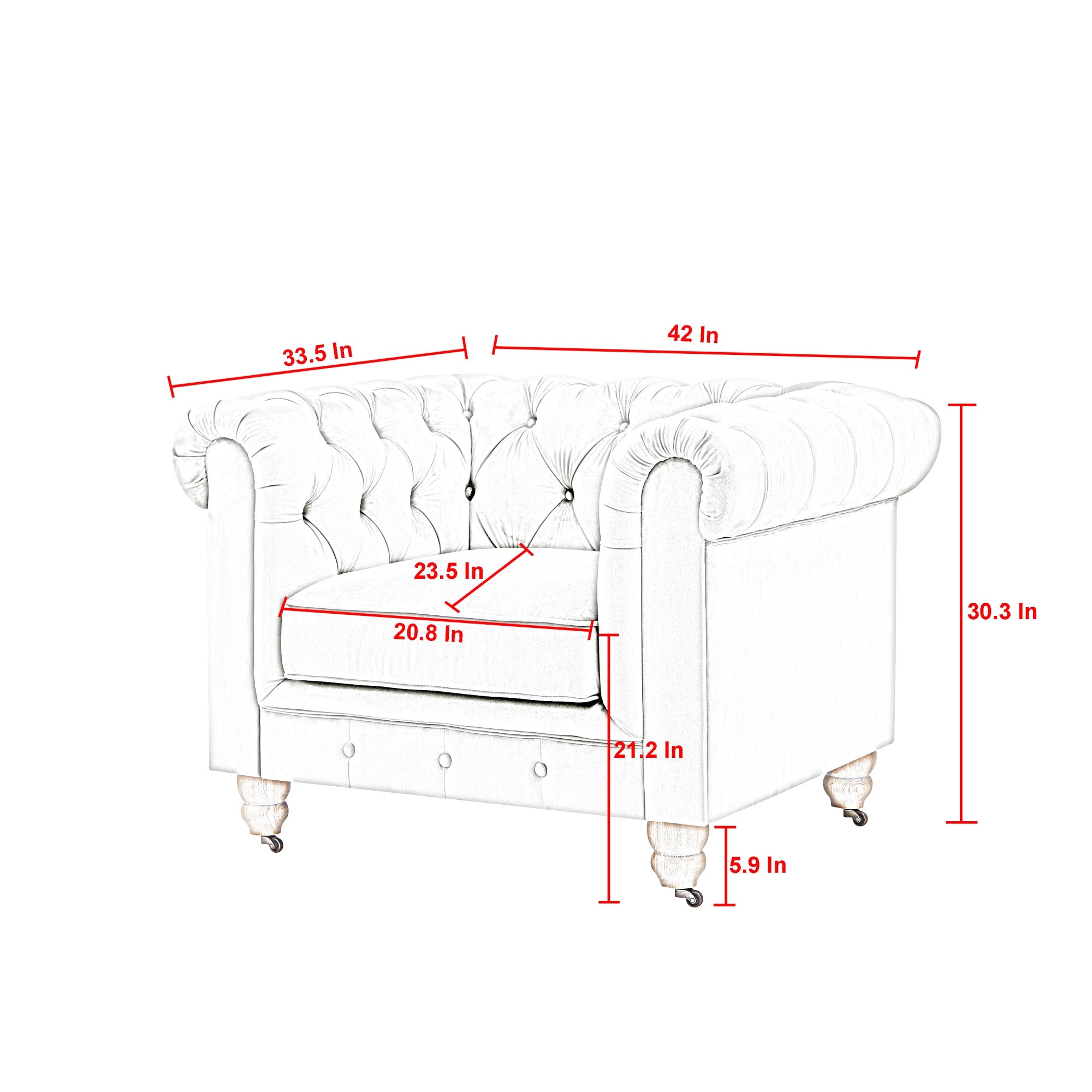 - Chesterfield chair design with a solid wood frame.