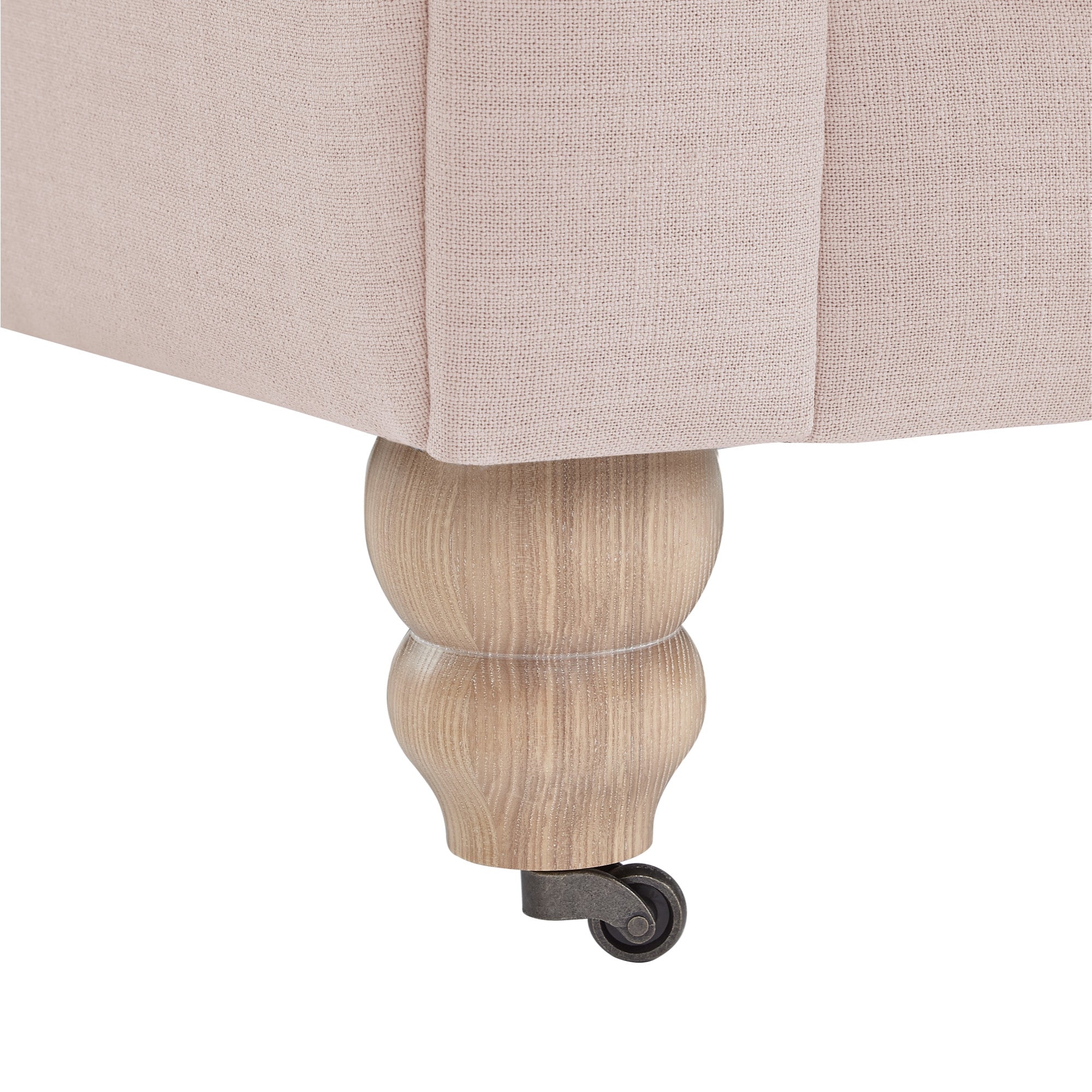 - Upholstered in soft pink linen for a luxurious feel.