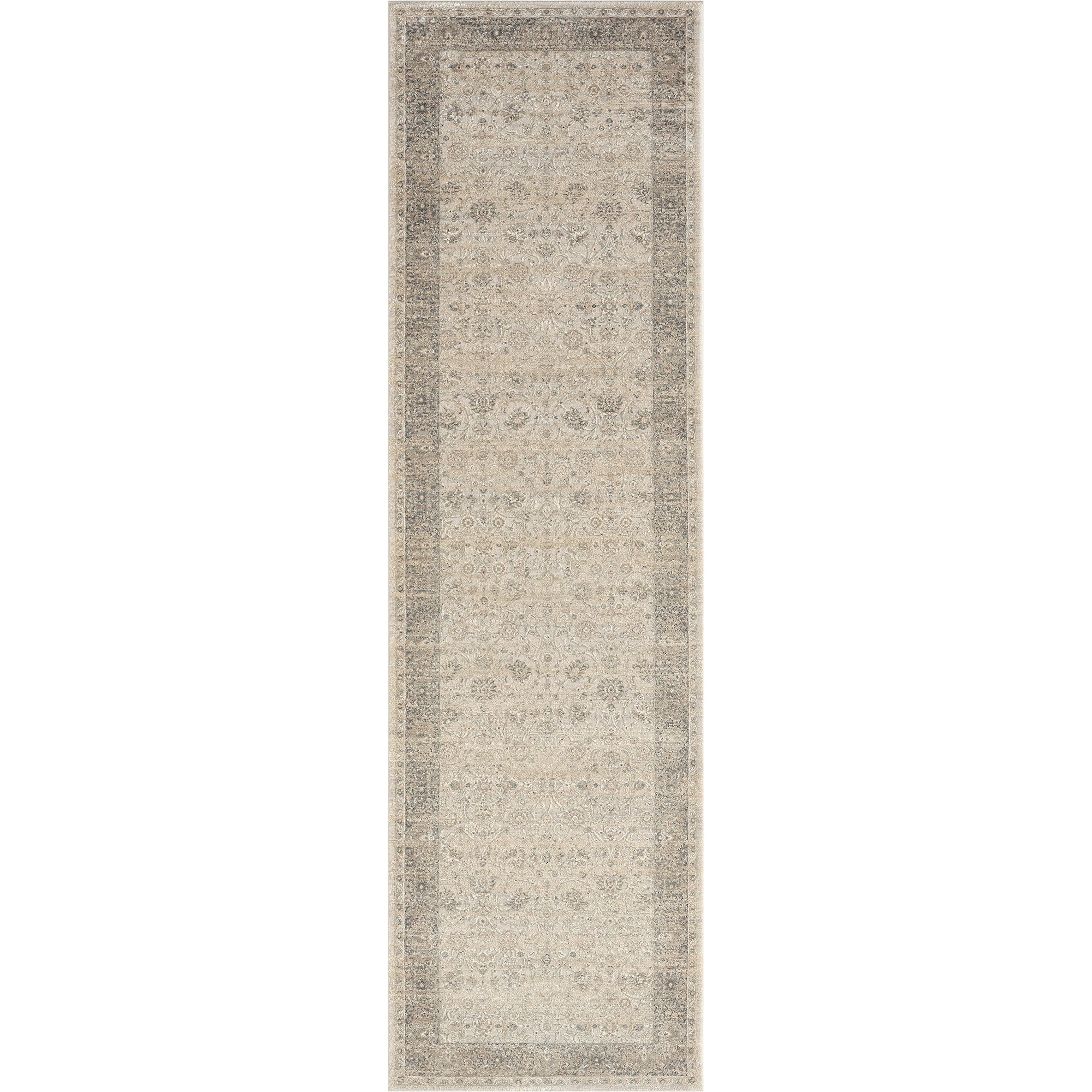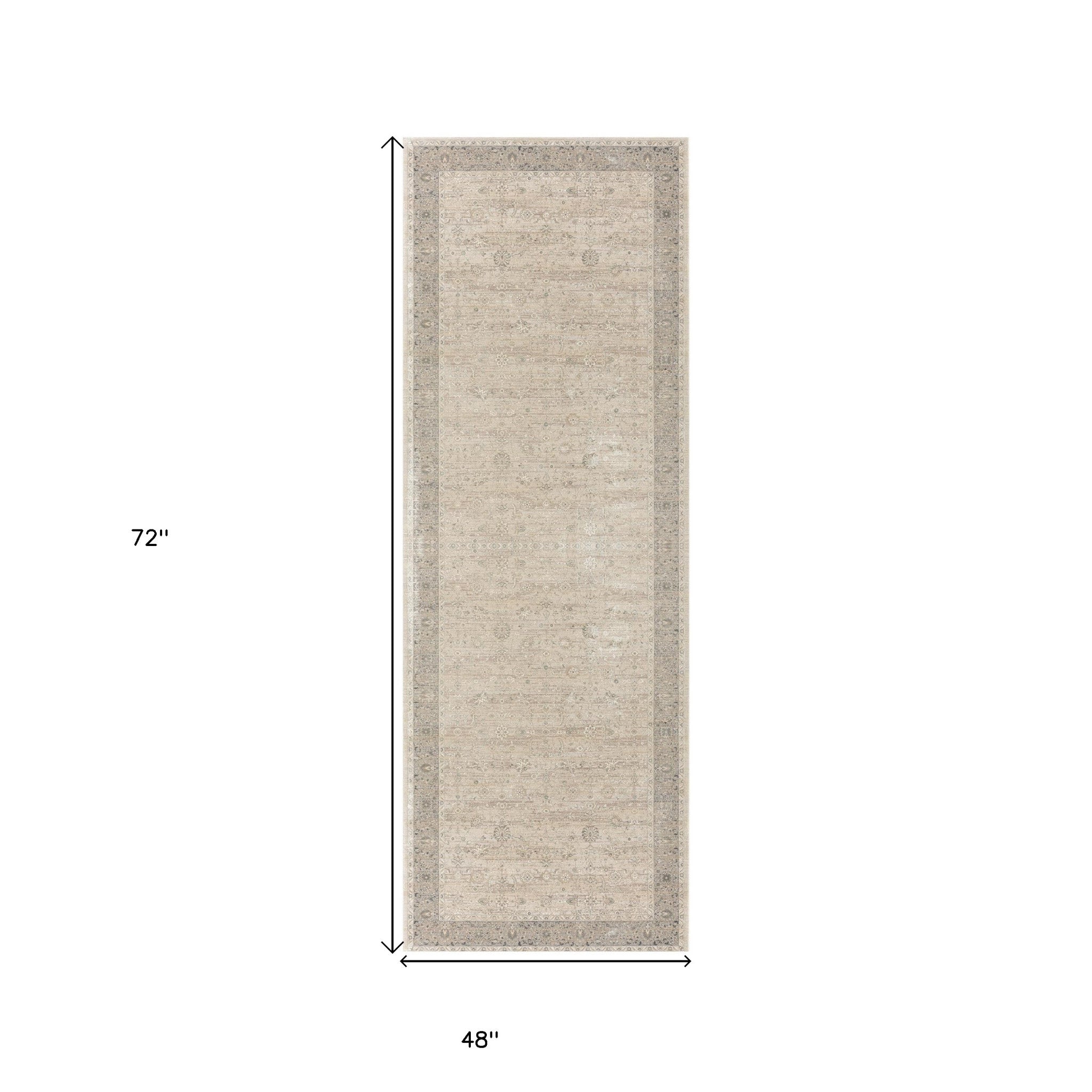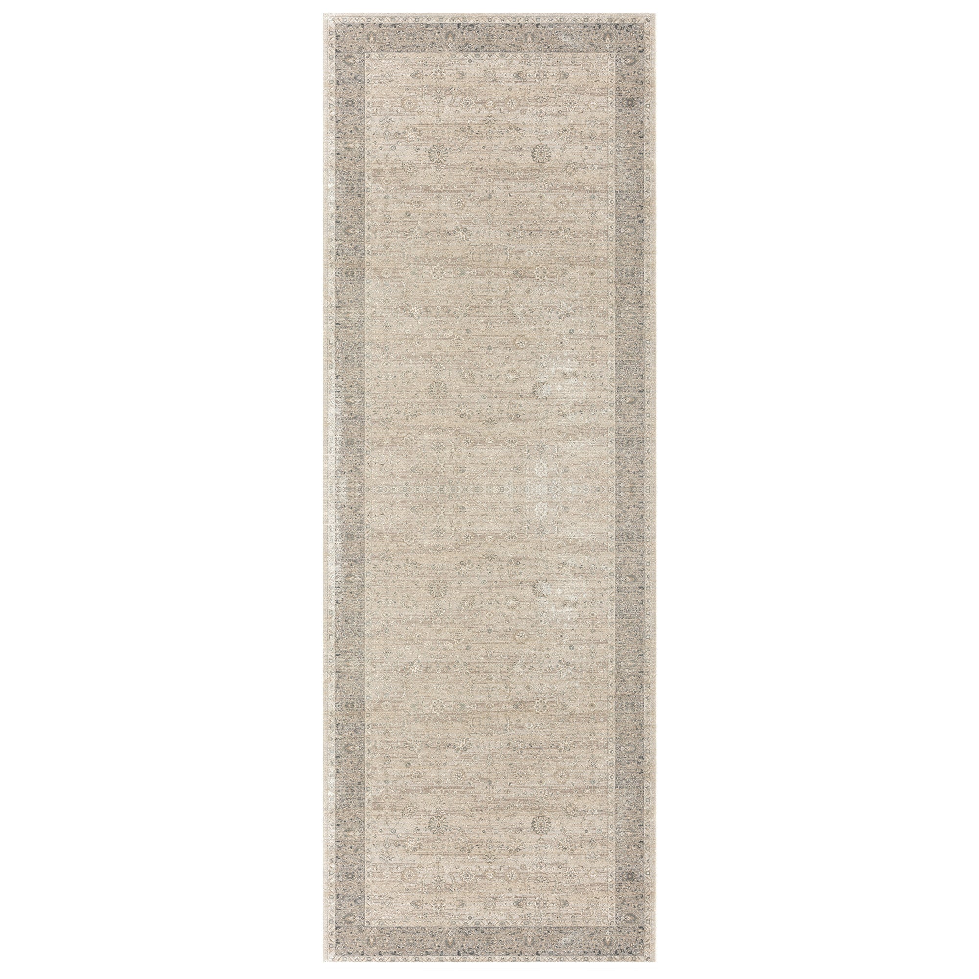 - Machine-made viscose area rug in beige and ivory traditional style.