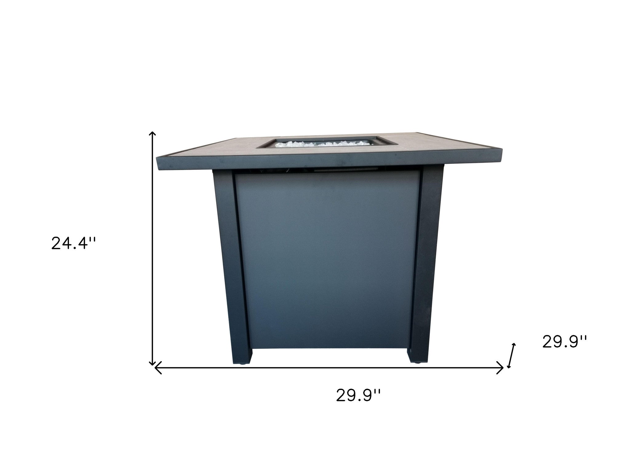 - Metal lid and clear fire glass are included
