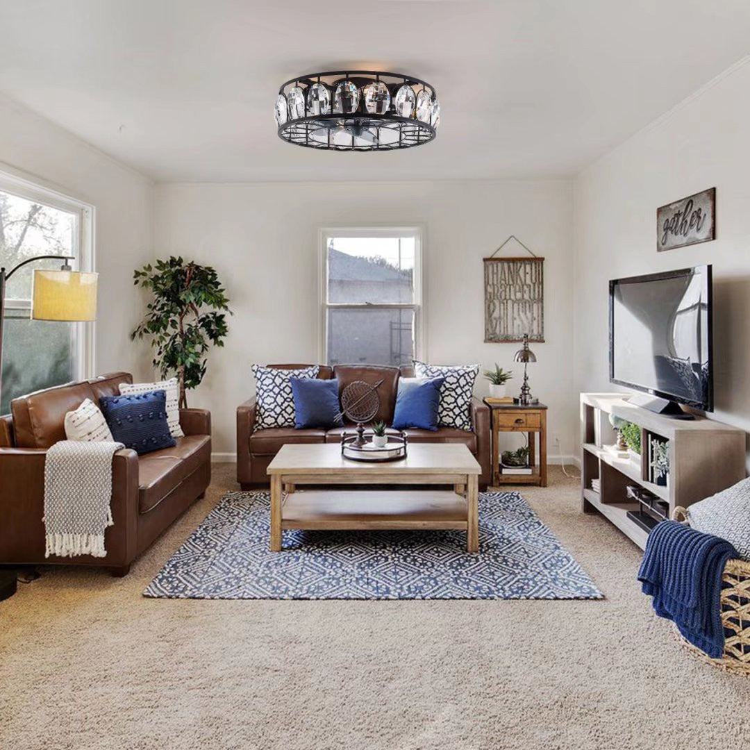- Features Glamorous Faux Crystal Chandelier Style Lighting combined with the practicality of a fan.