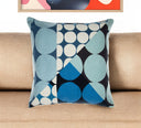 - Hand-woven embroidered blue accent throw pillow with a modern style.