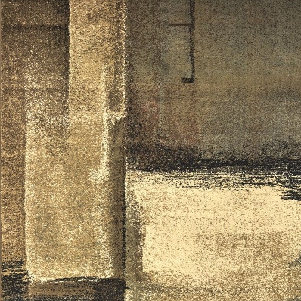 - Machine-made polypropylene rug in cream and taupe abstract design.