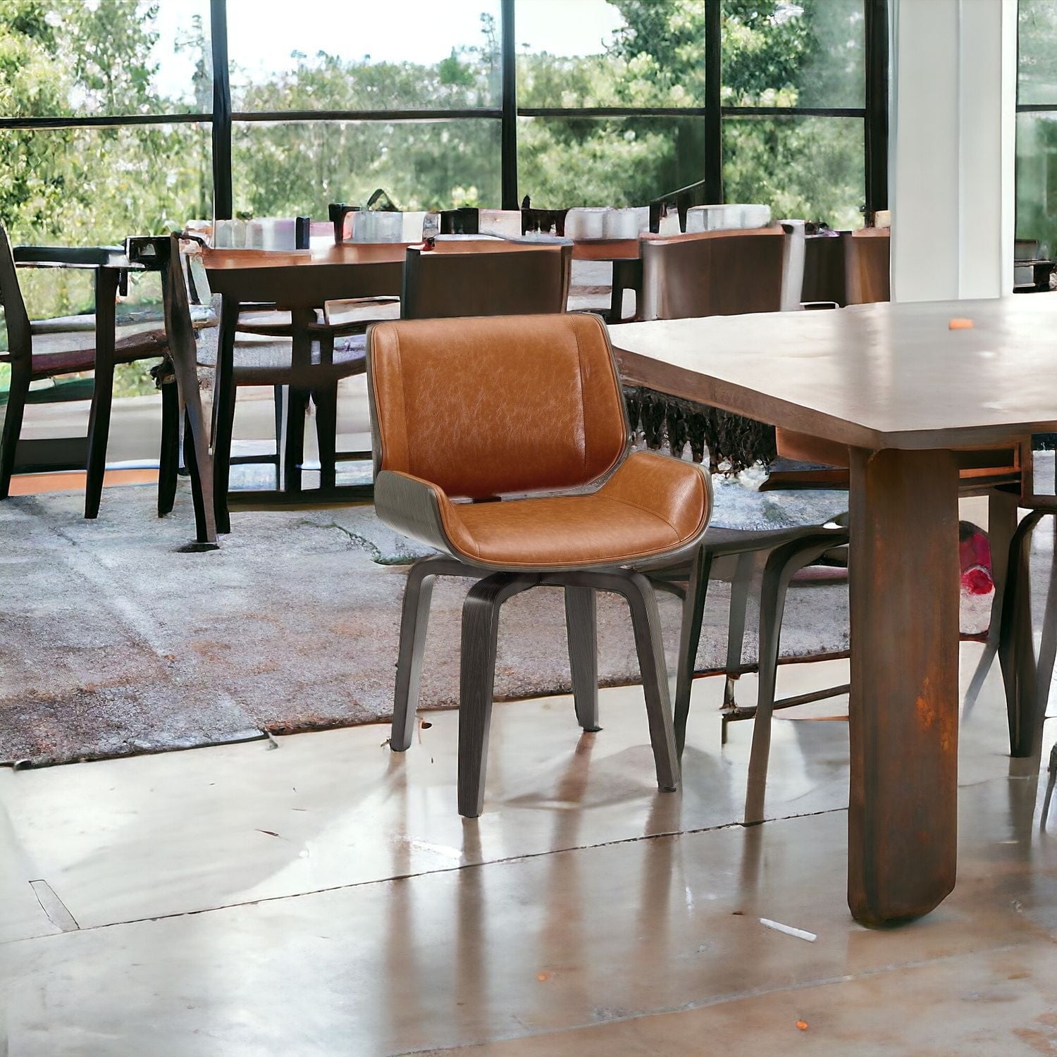 - 1. Swiveling side chair with a modern bentwood back.