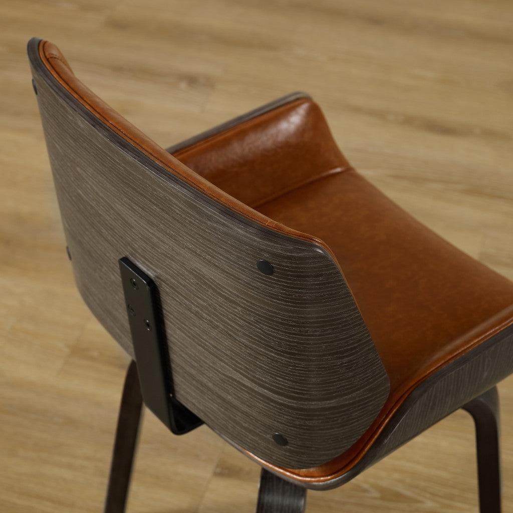 - 2. Upholstered brown seat in a sleek modern design.