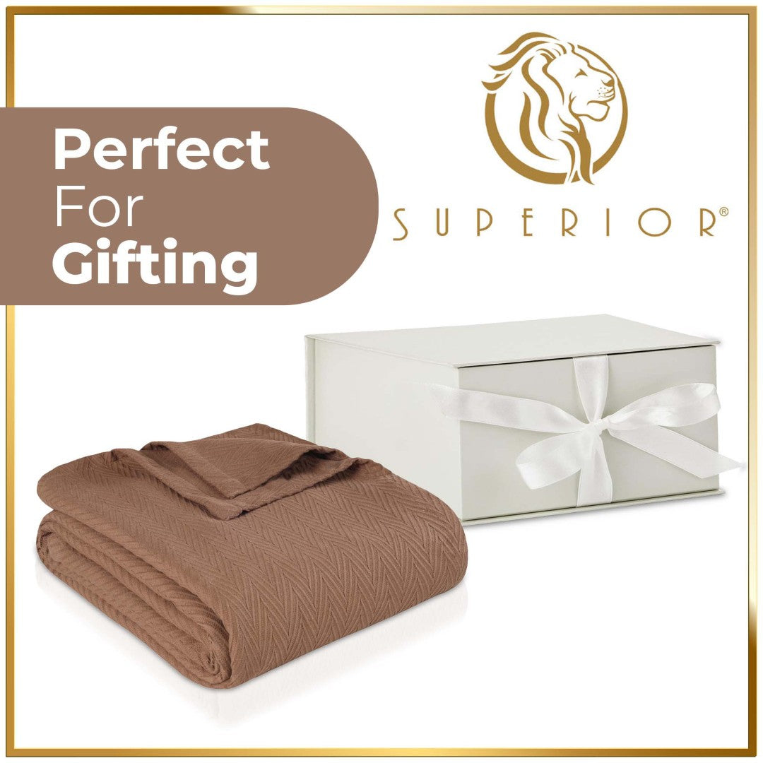- Modern style woven cotton blanket for California King size bed with taupe back side color.