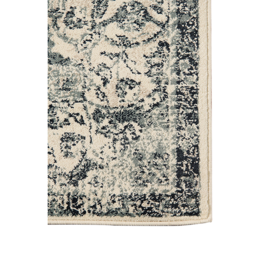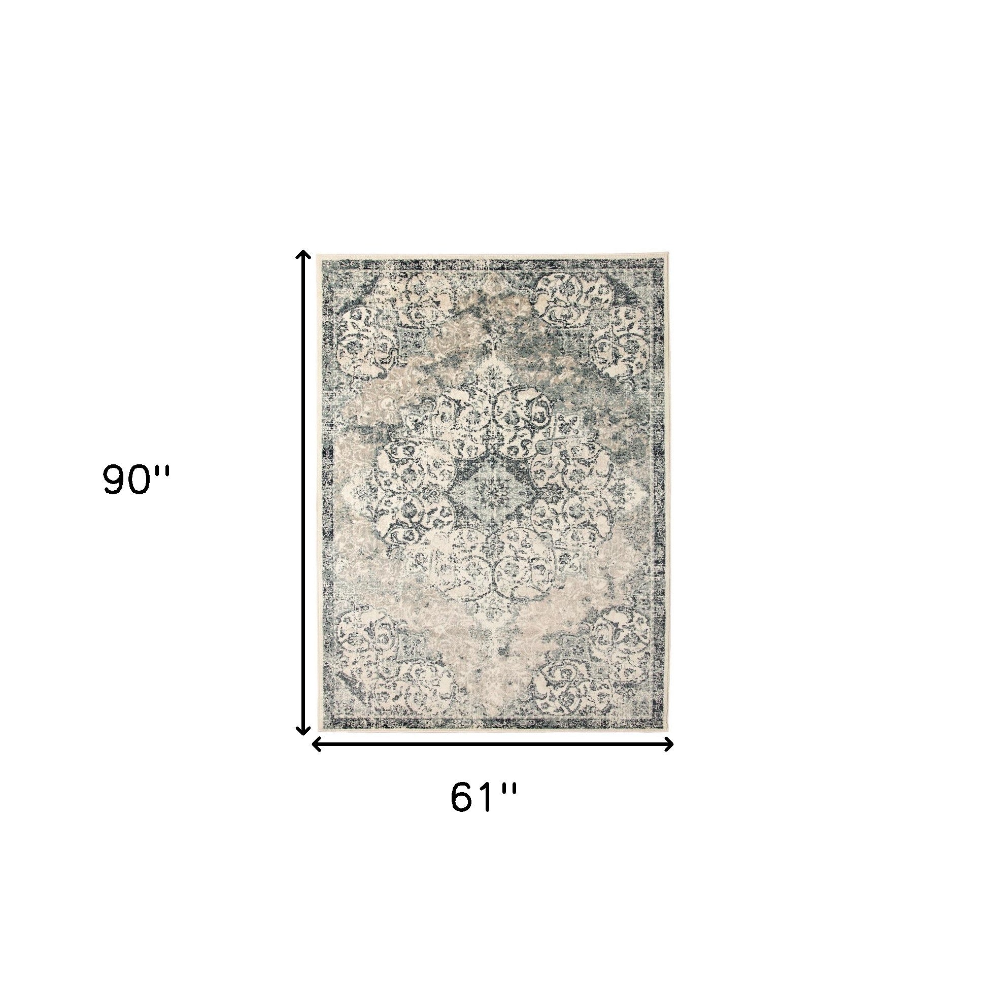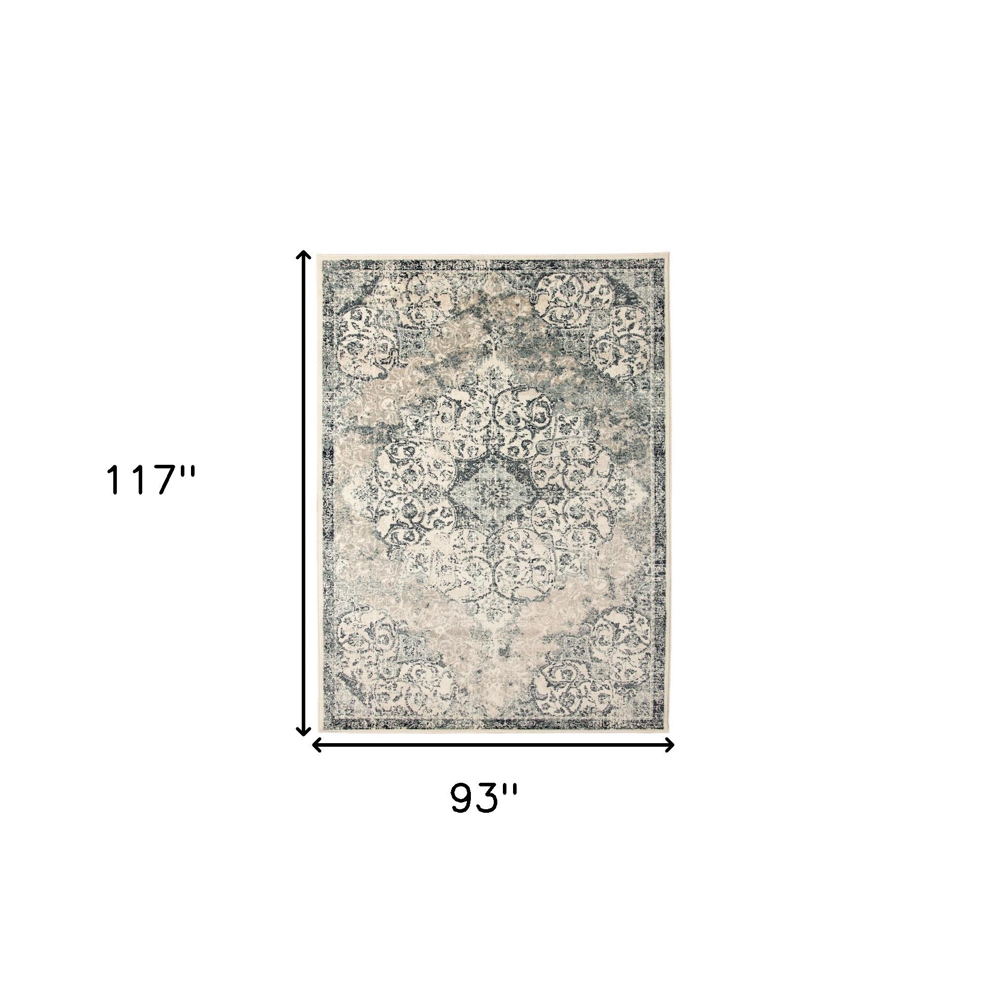 - Beige and blue power-loomed area rug with a traditional medallion pattern, fade-resistant and stain-resistant, suitable for spot cleaning with water.