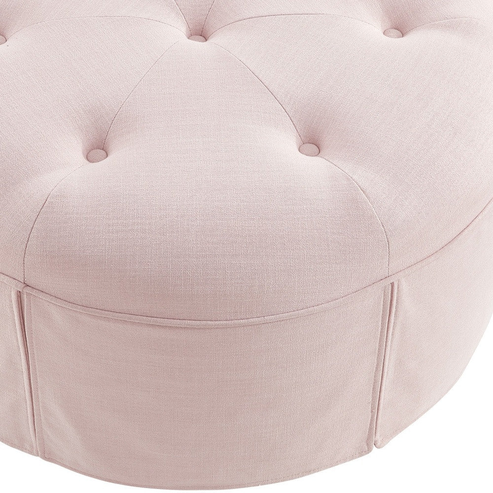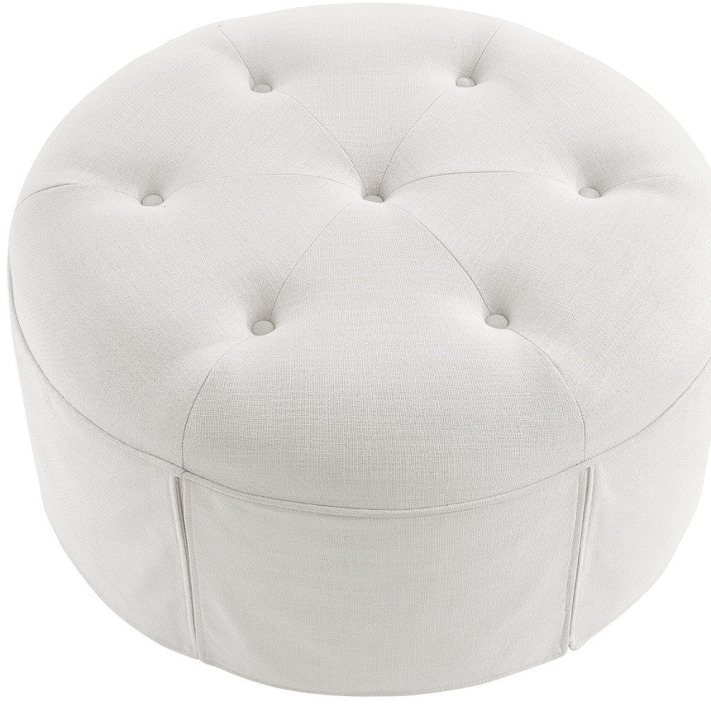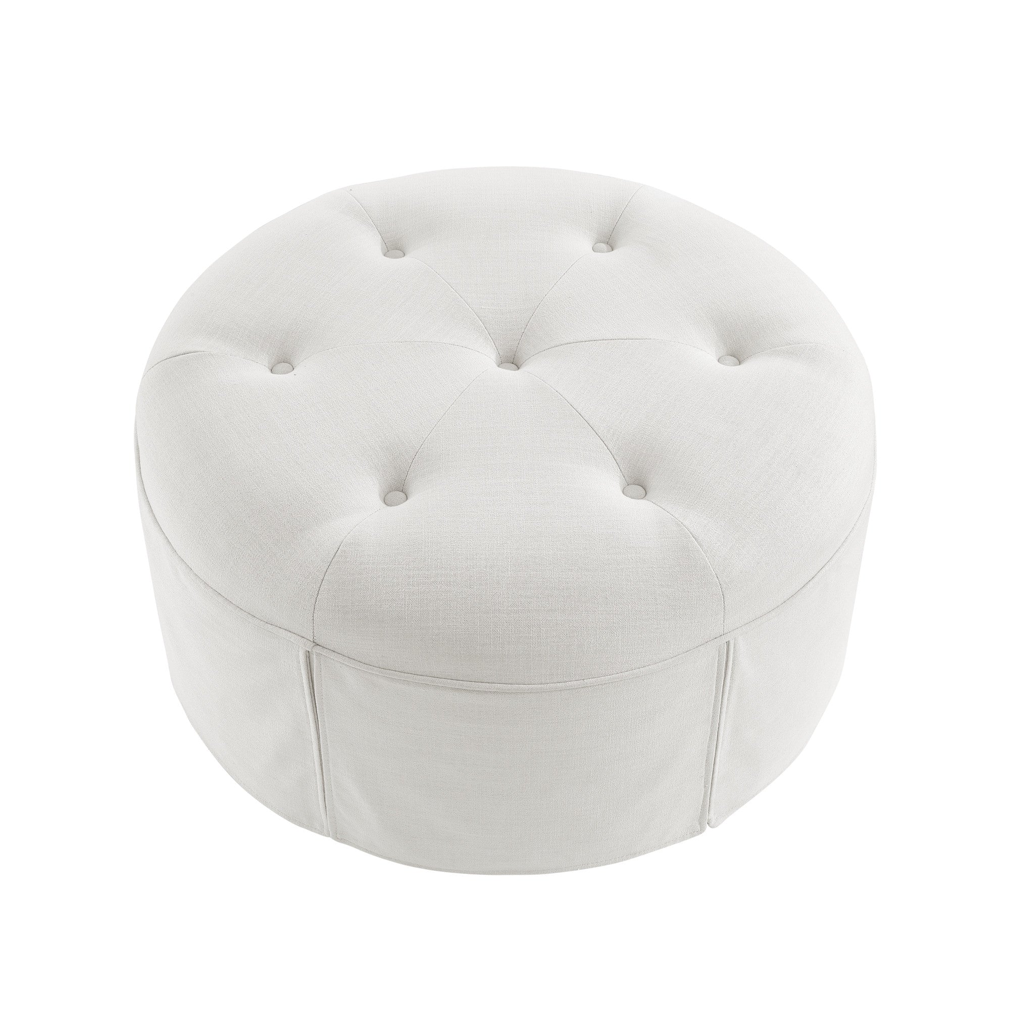 - BUTTON TUFTING - Chic button tufting of our stunning cocktail ottoman offers both design and comfort. Our skirted upholstered ottoman with decorative piping features old-fashioned themes mingled with traditional styles