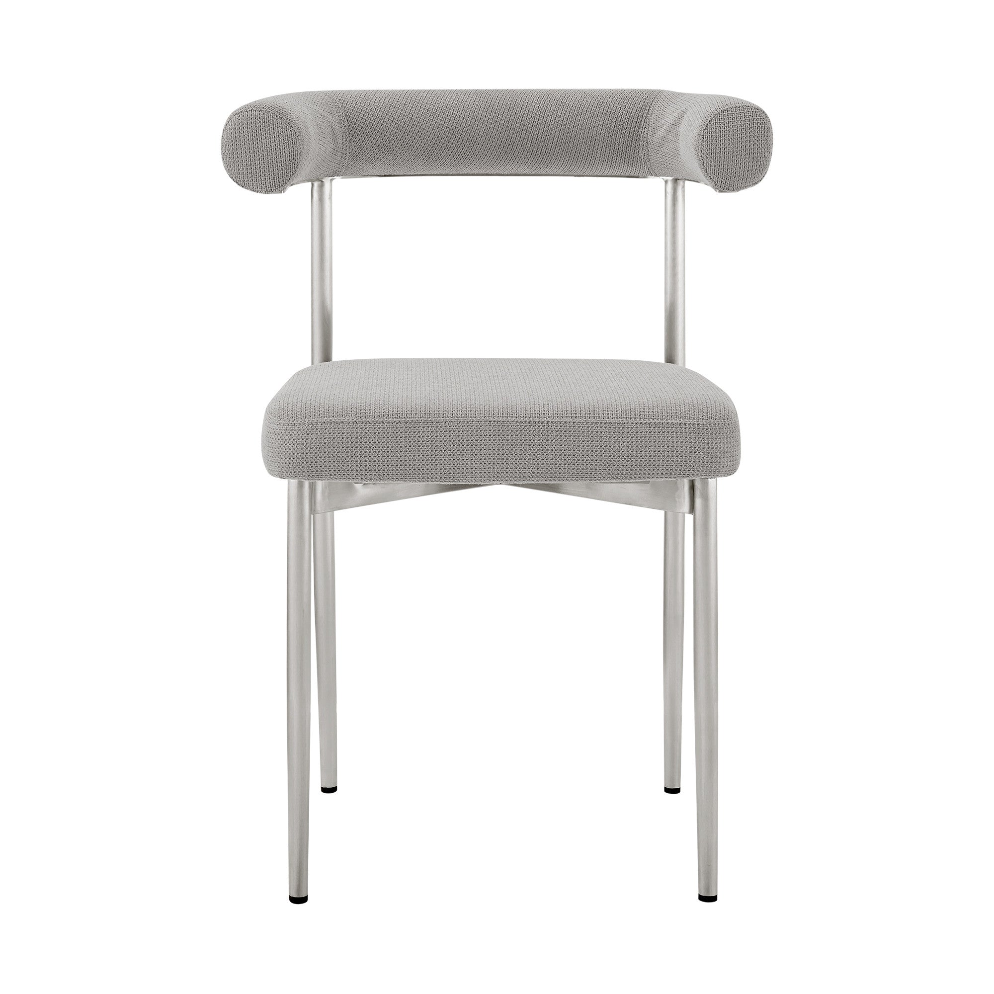 - Upholstered in light gray polyester blend.