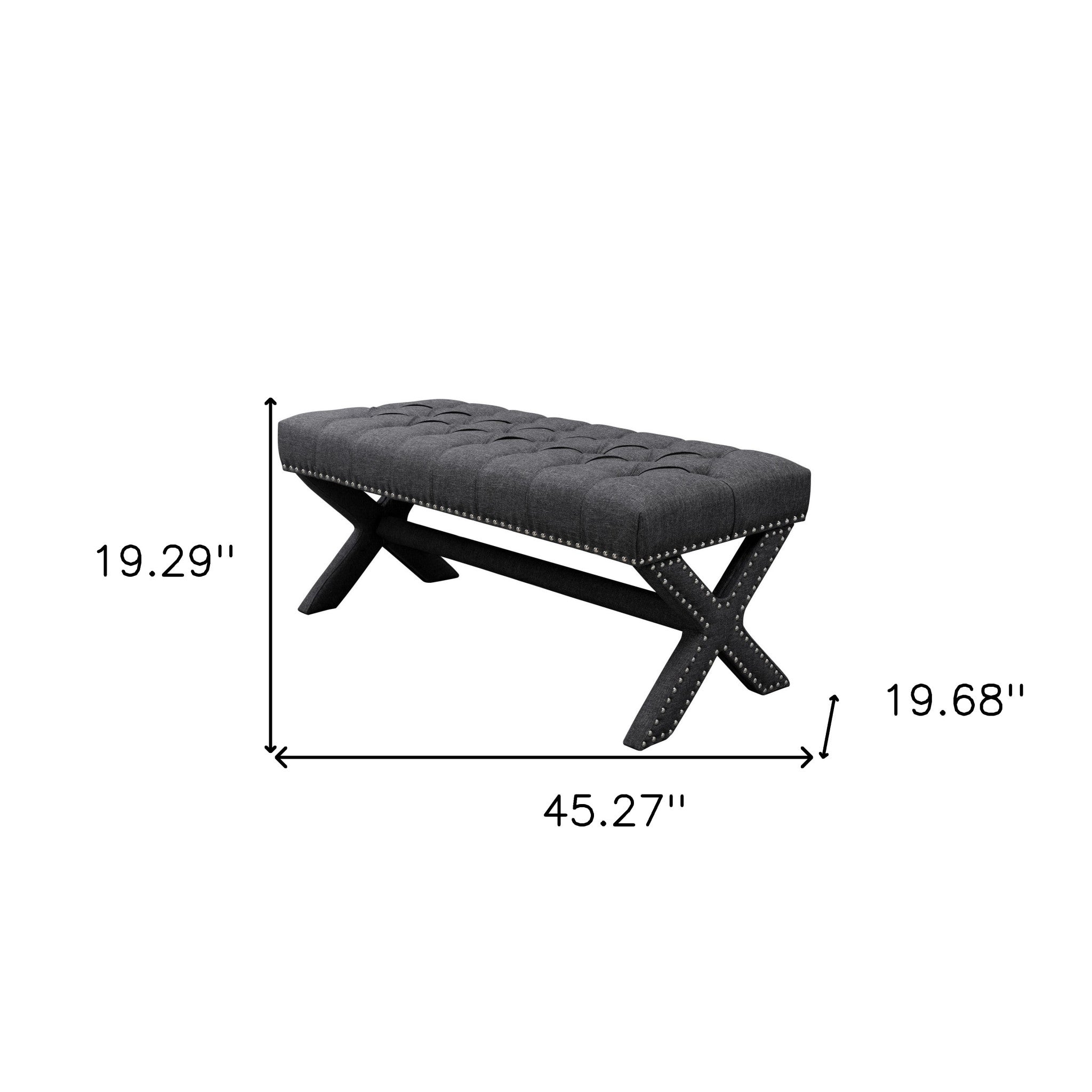 - Upholstered seat in dark gray.