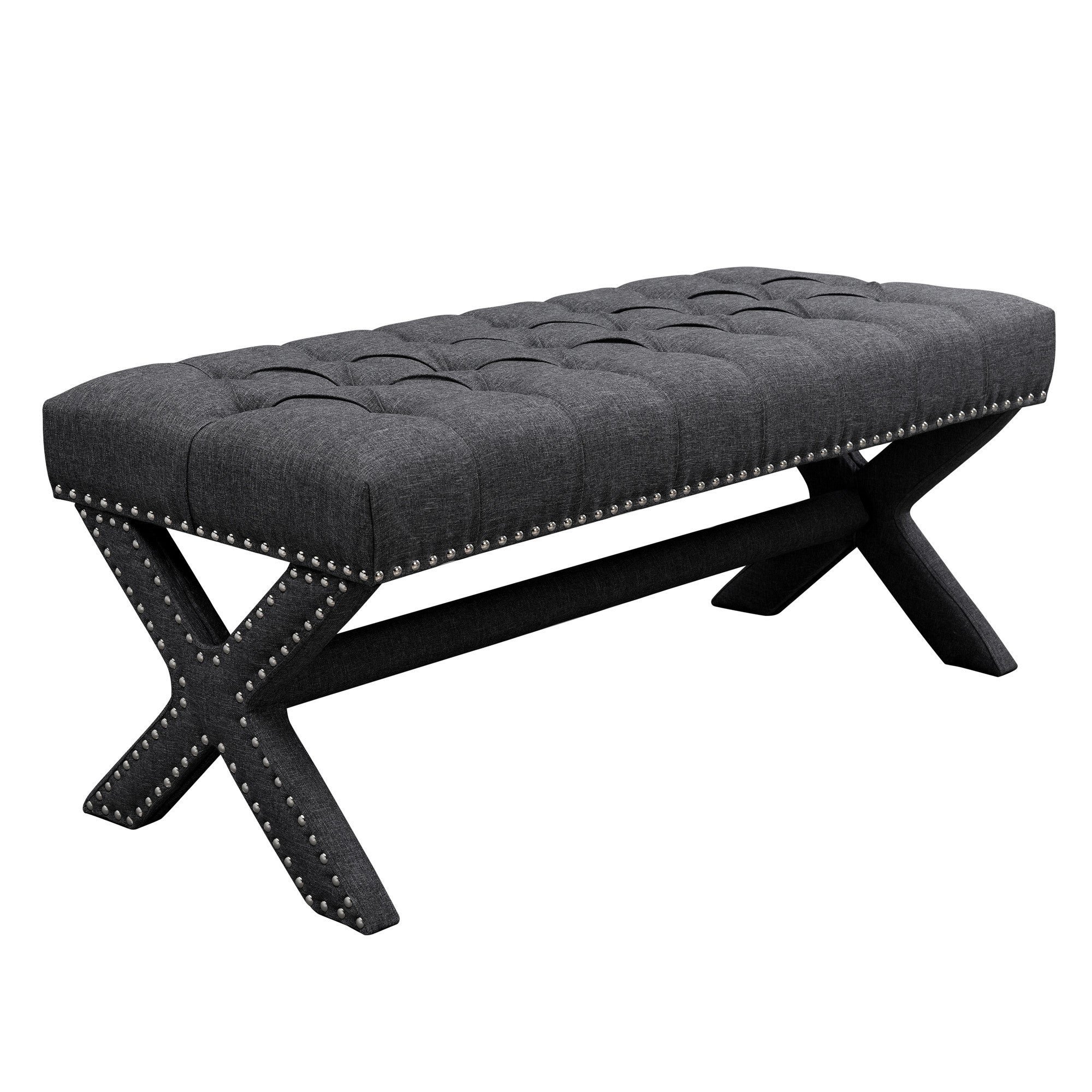 - Solid wood legs in dark gray color.