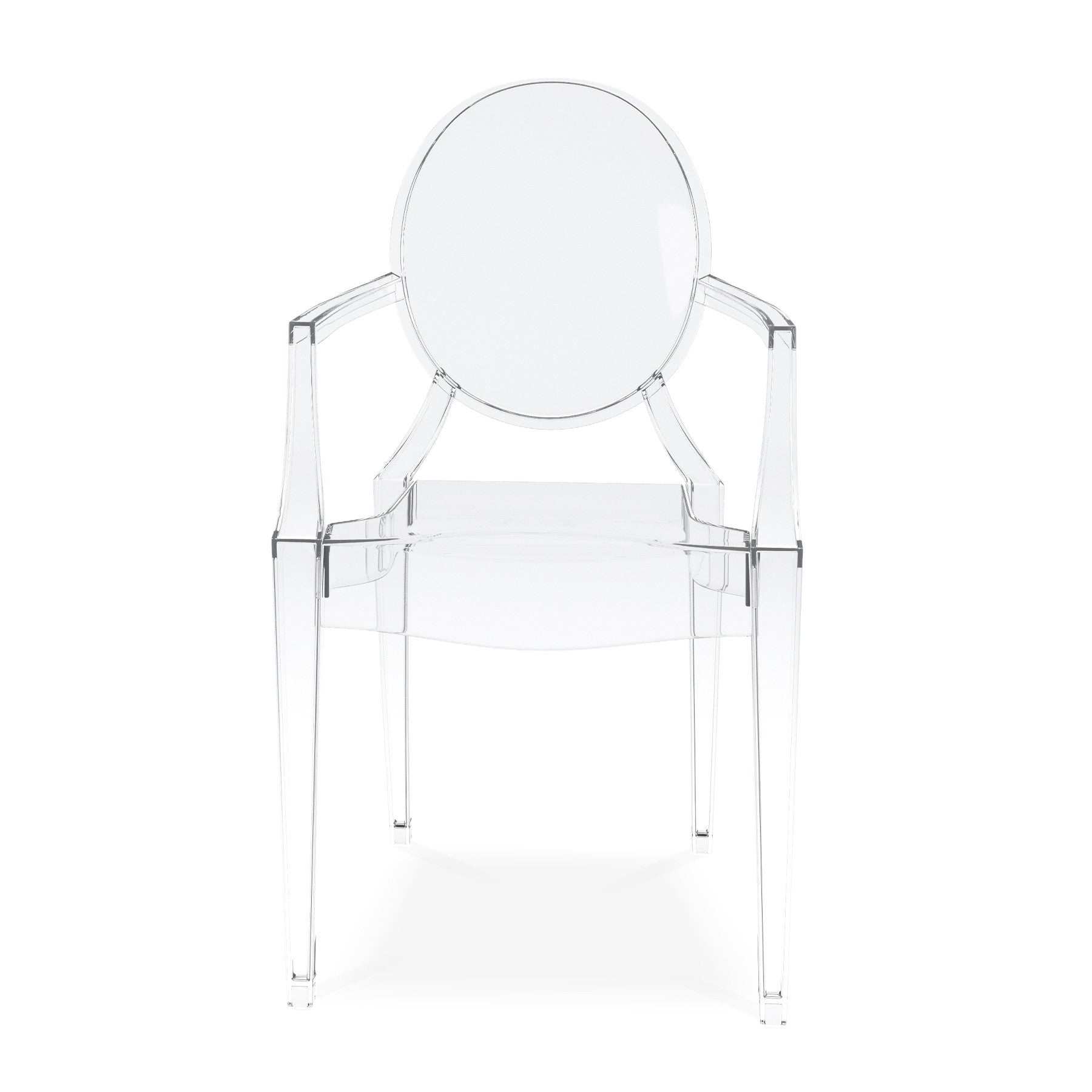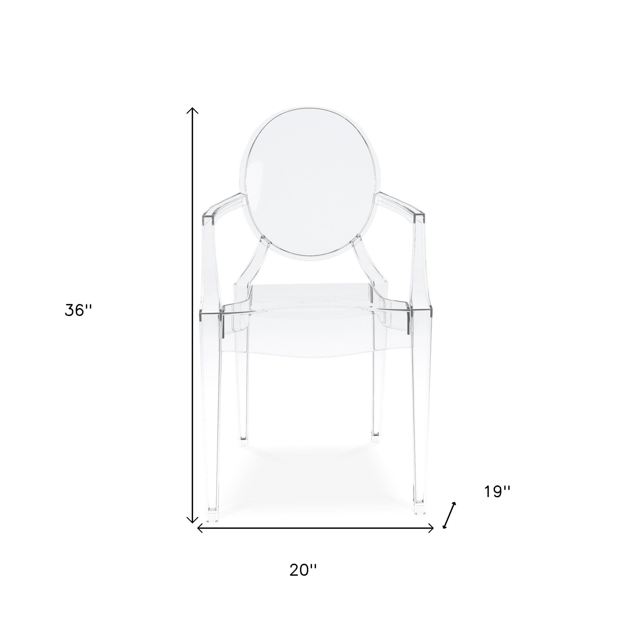 - Clear heavy duty acrylic dining arm chair.