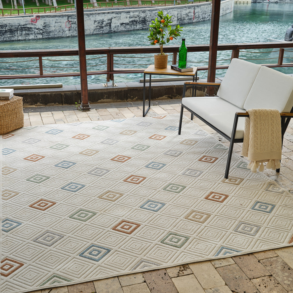 - Suitable for use both indoors and outdoors this rug is ideal for deck, porch, patio, pool, kitchen, entrance foyer, and more.