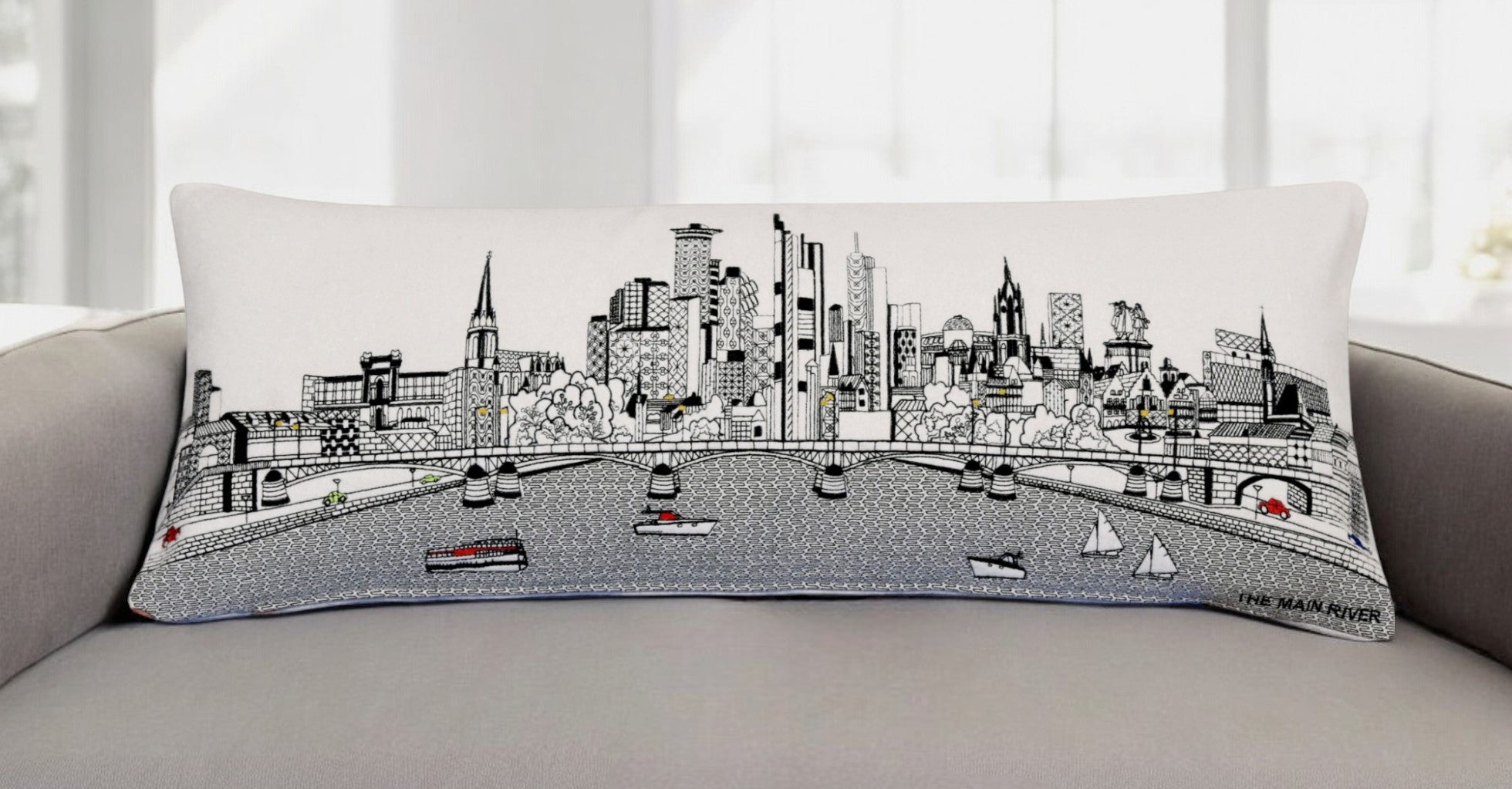 - Features an eclectic Frankfurt Germany cityscape / skyline on front, with solid color on the back.