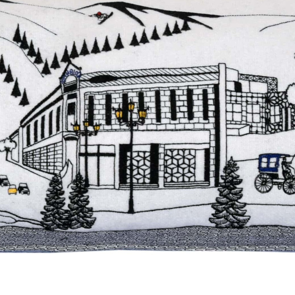 - Features an eclectic Aspen Colorado Cityscape and skyline on front with solid color on the back.