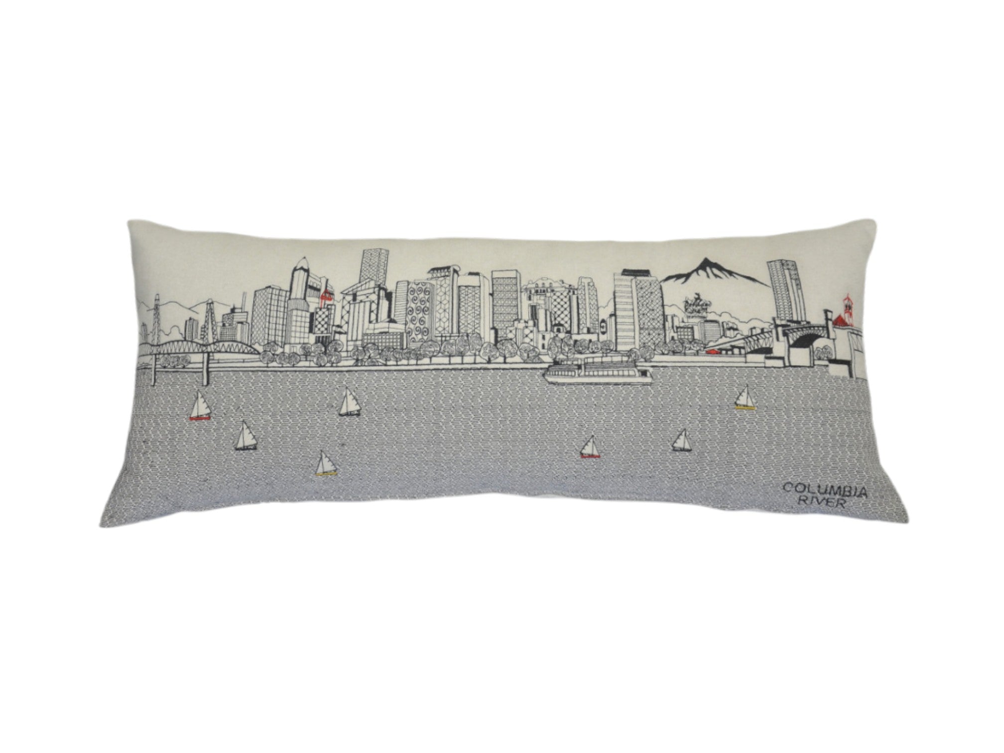 - Features an eclectic Portland Oregon Cityscape and skyline on front with solid color on the back.