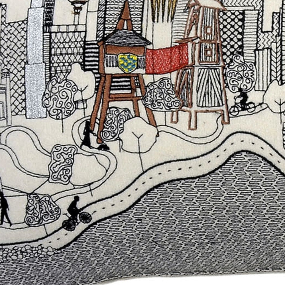 - Features an eclectic Tulsa Oklahoma Cityscape and skyline on front with solid color on the back.