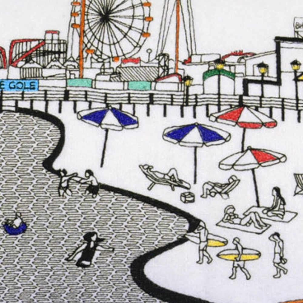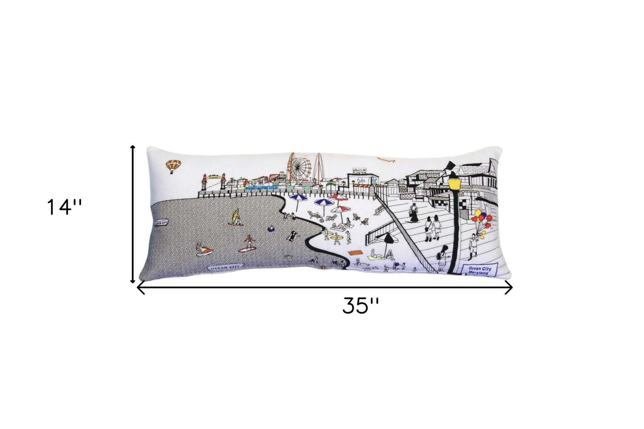 - Features an eclectic Ocean City Maryland cityscape / skyline on front, with solid color on the back.