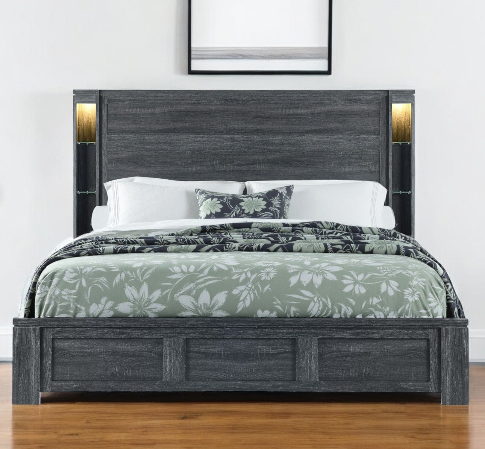 - Bed frame sits on legs that elevate it to be raised off the floor.