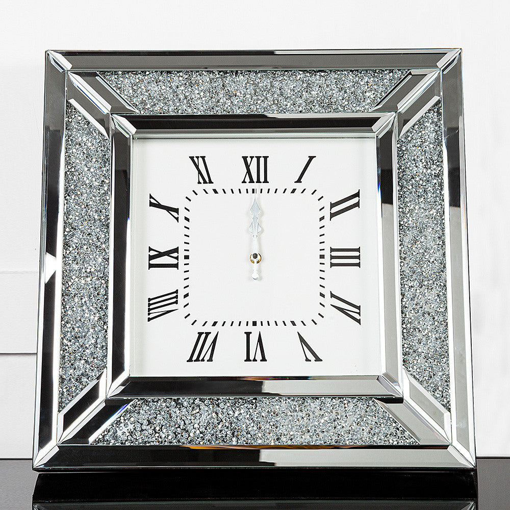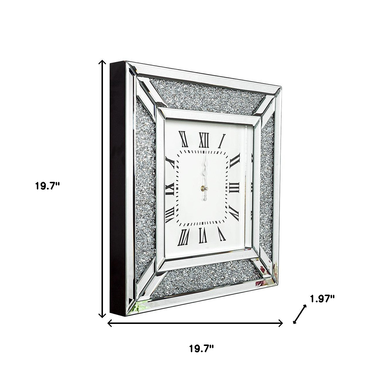 - Gorgeous Glam Crushed Faux Crystal Diamond Hanging Wall Clock with Mirrored Frame.