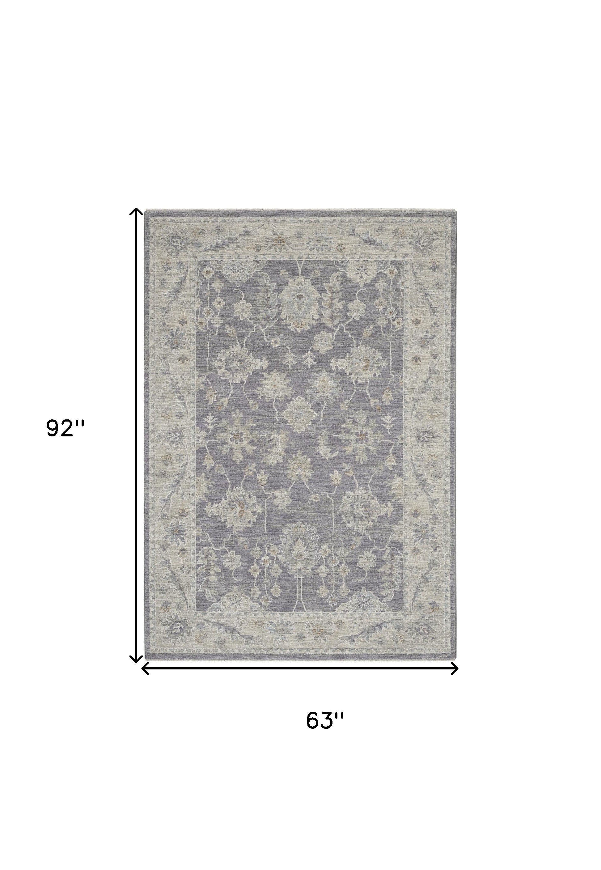 - machine-made area rug in ivory and gray traditional style crafted from polypropylene and polyester blend, easy to care for with vacuum cleaning.
