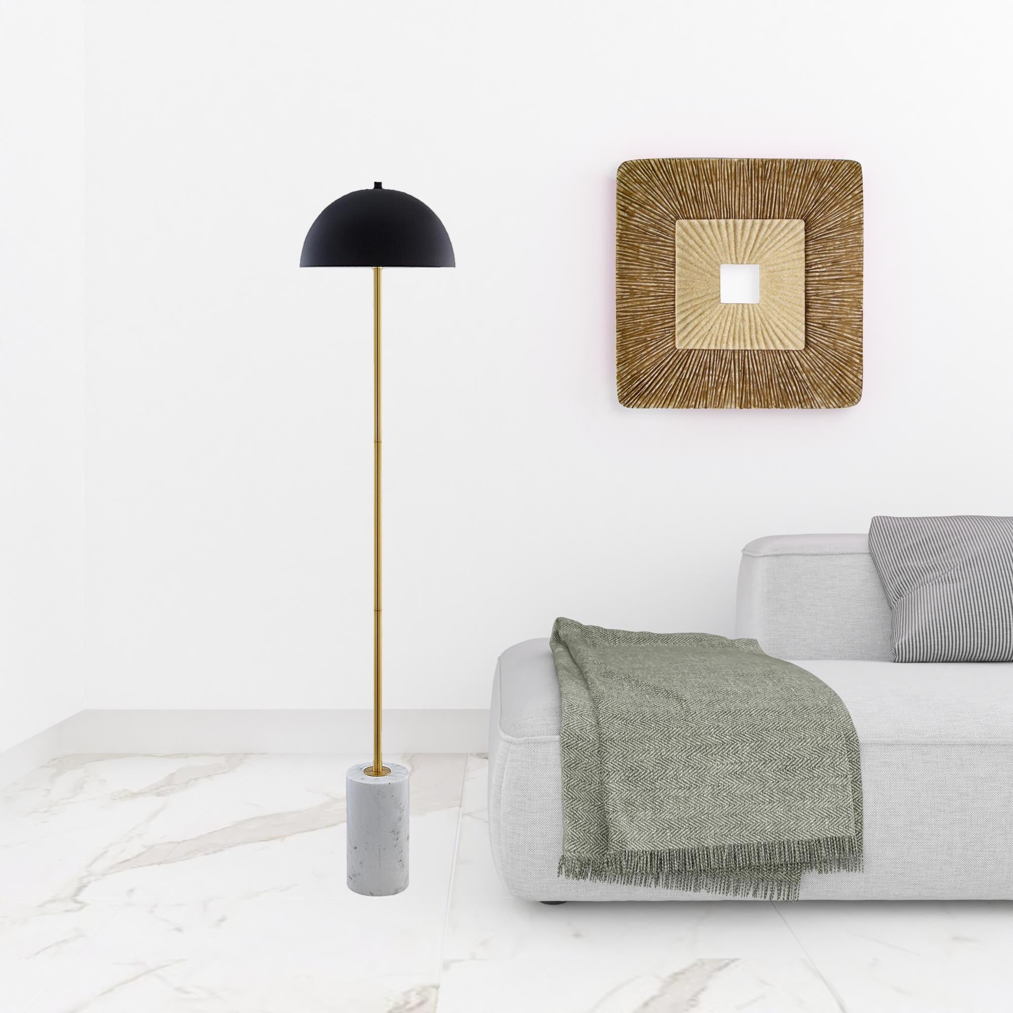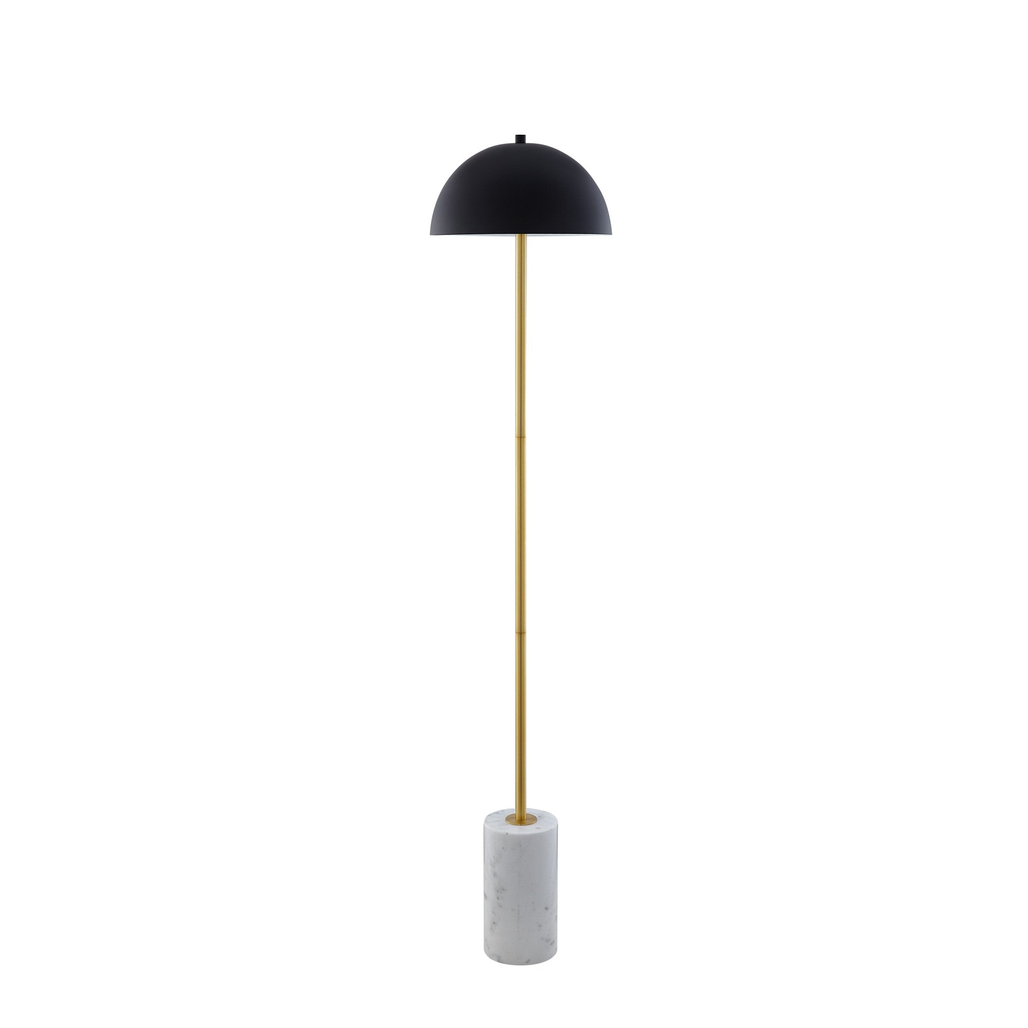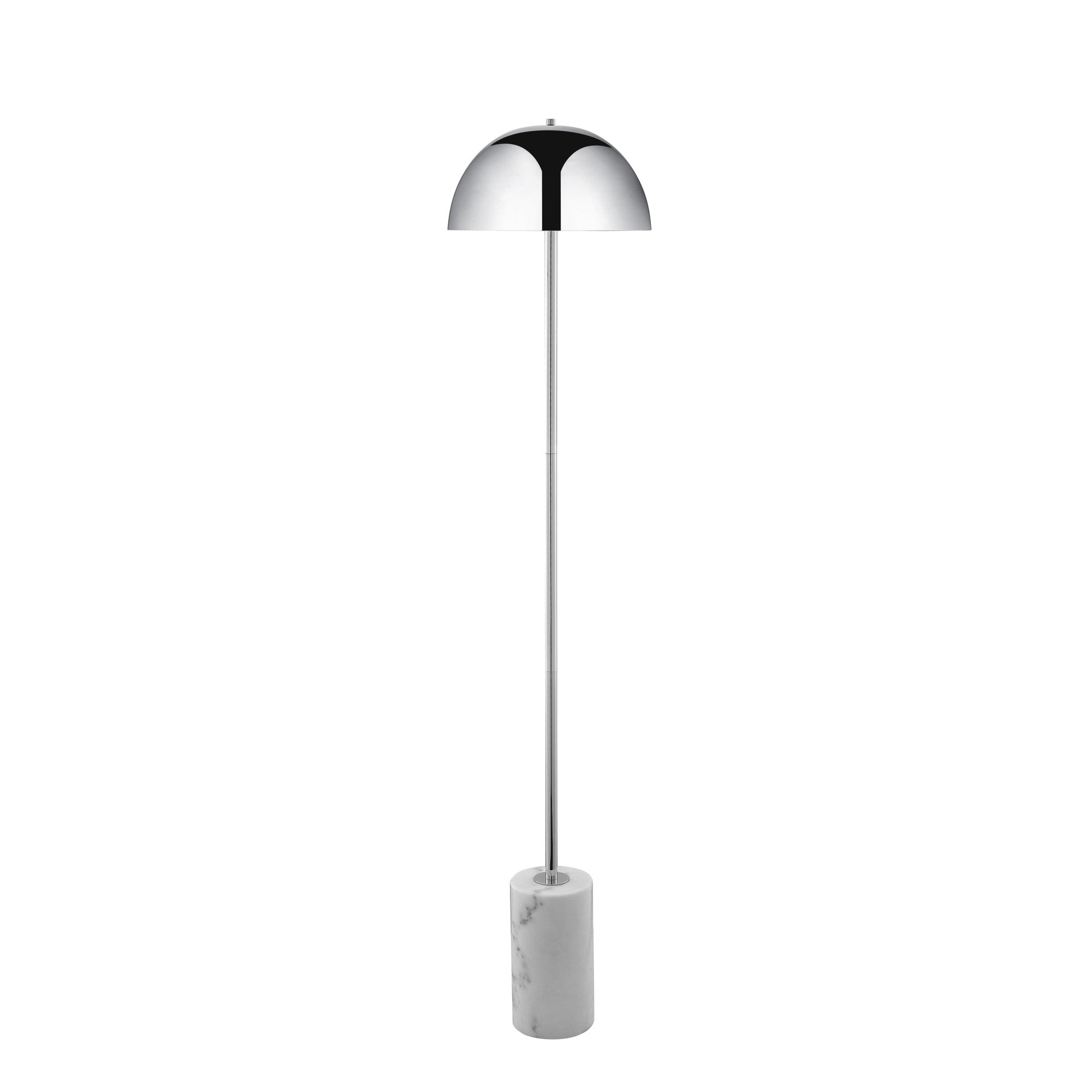 - Modern mixed material minimalist style white marble with silver / chrome metallic body and mushroom dome shade.