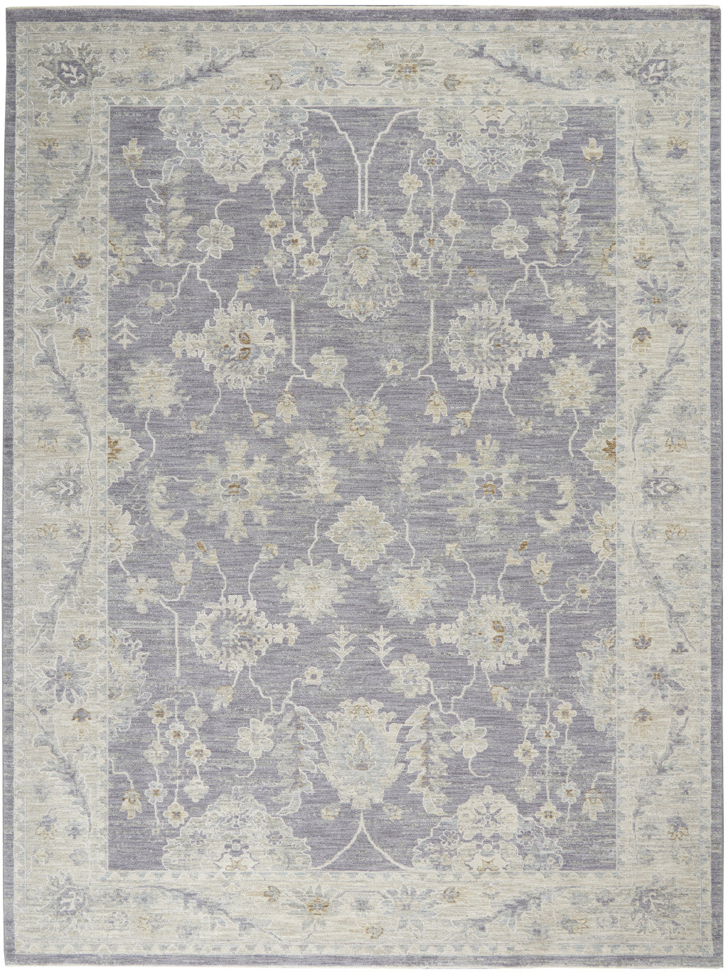 - Machine-made area rug in a traditional gray and ivory color scheme, crafted from a polypropylene and polyester blend for easy maintenance.