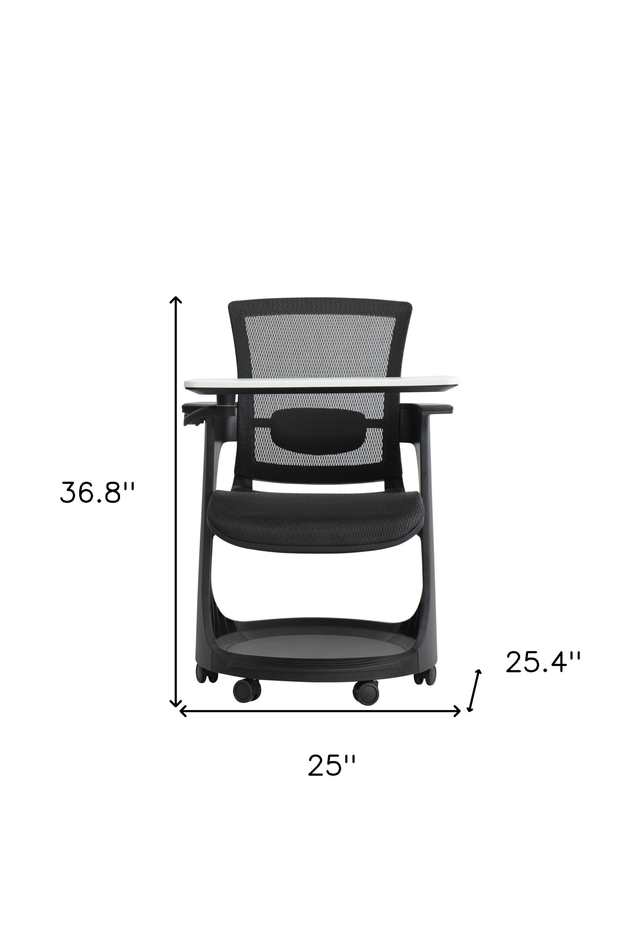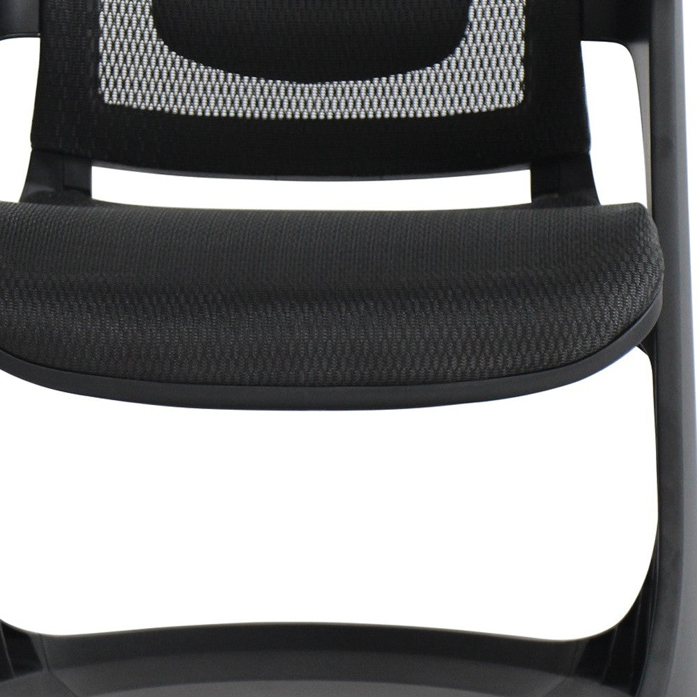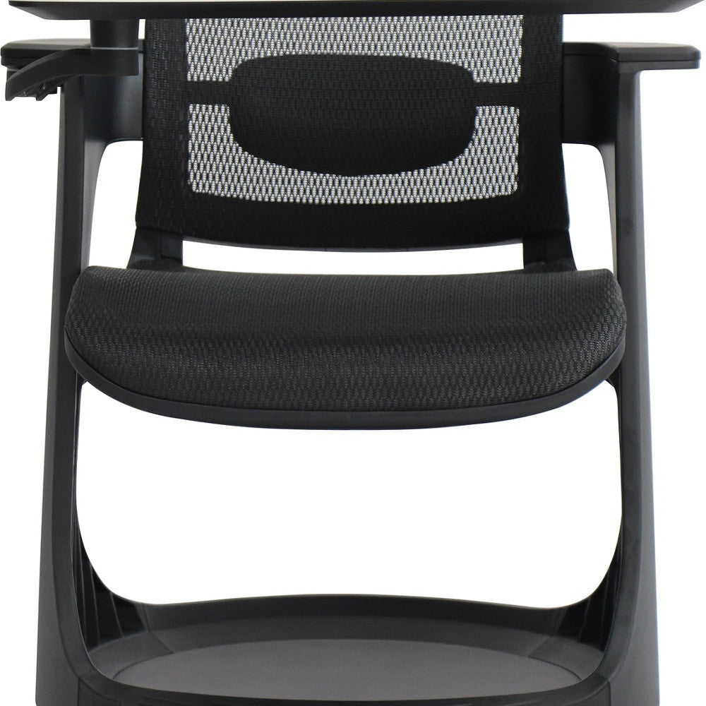 - Ergonomically designed task chair with a black plastic frame and black mesh upholstery for maximum comfort.