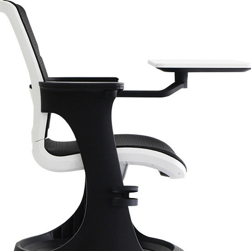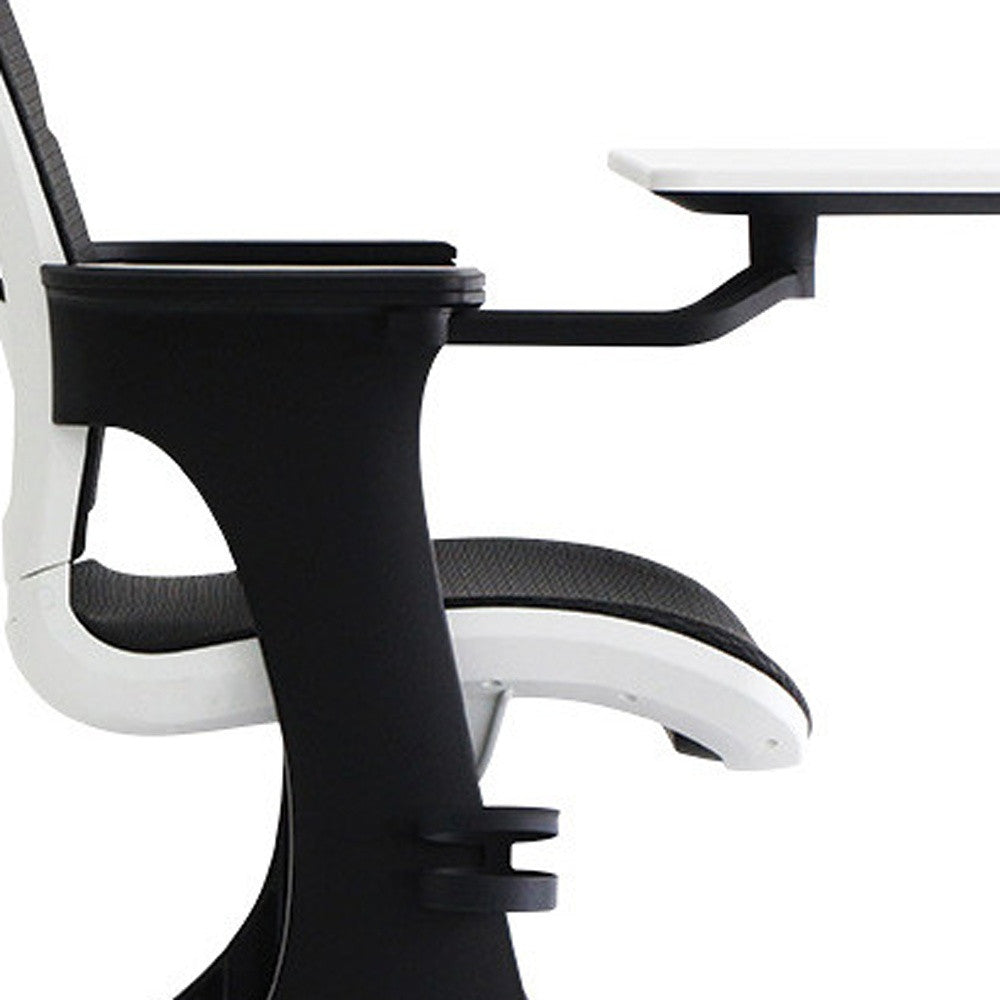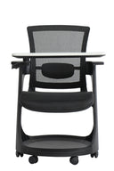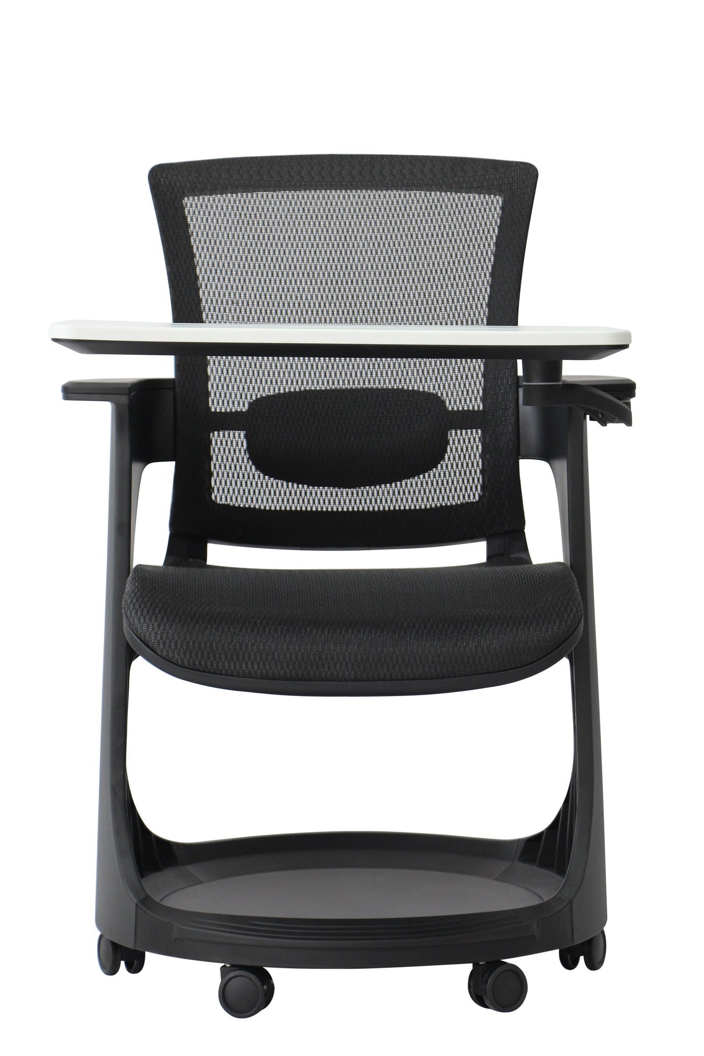 - Ergonomically designed task chair with a black plastic frame and black mesh upholstery for maximum comfort.