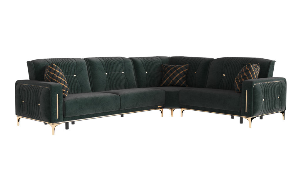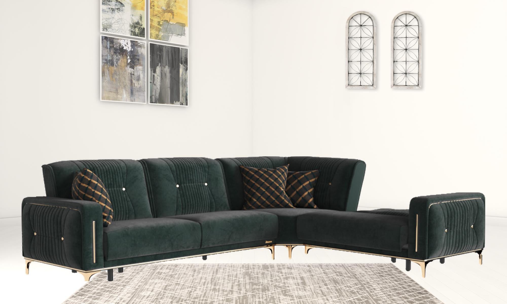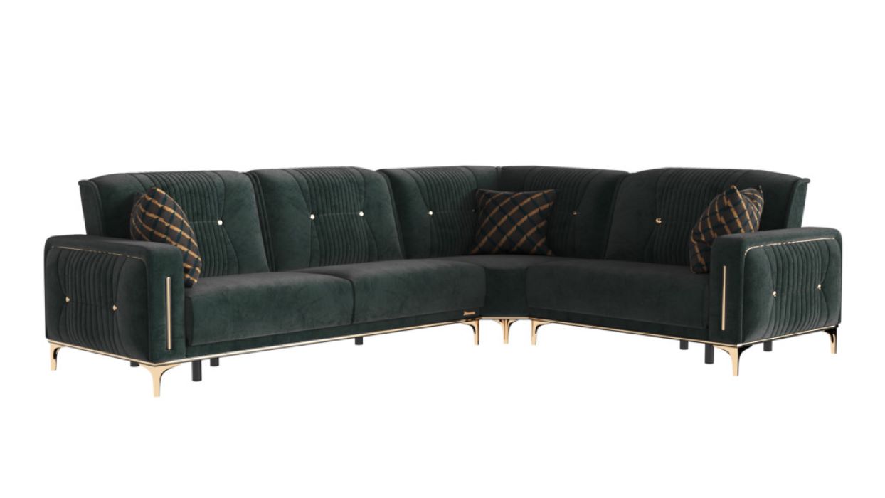 - Converts quickly and easily from sectional to sofa to flat sleeper. Includes 4 accent toss pillows.